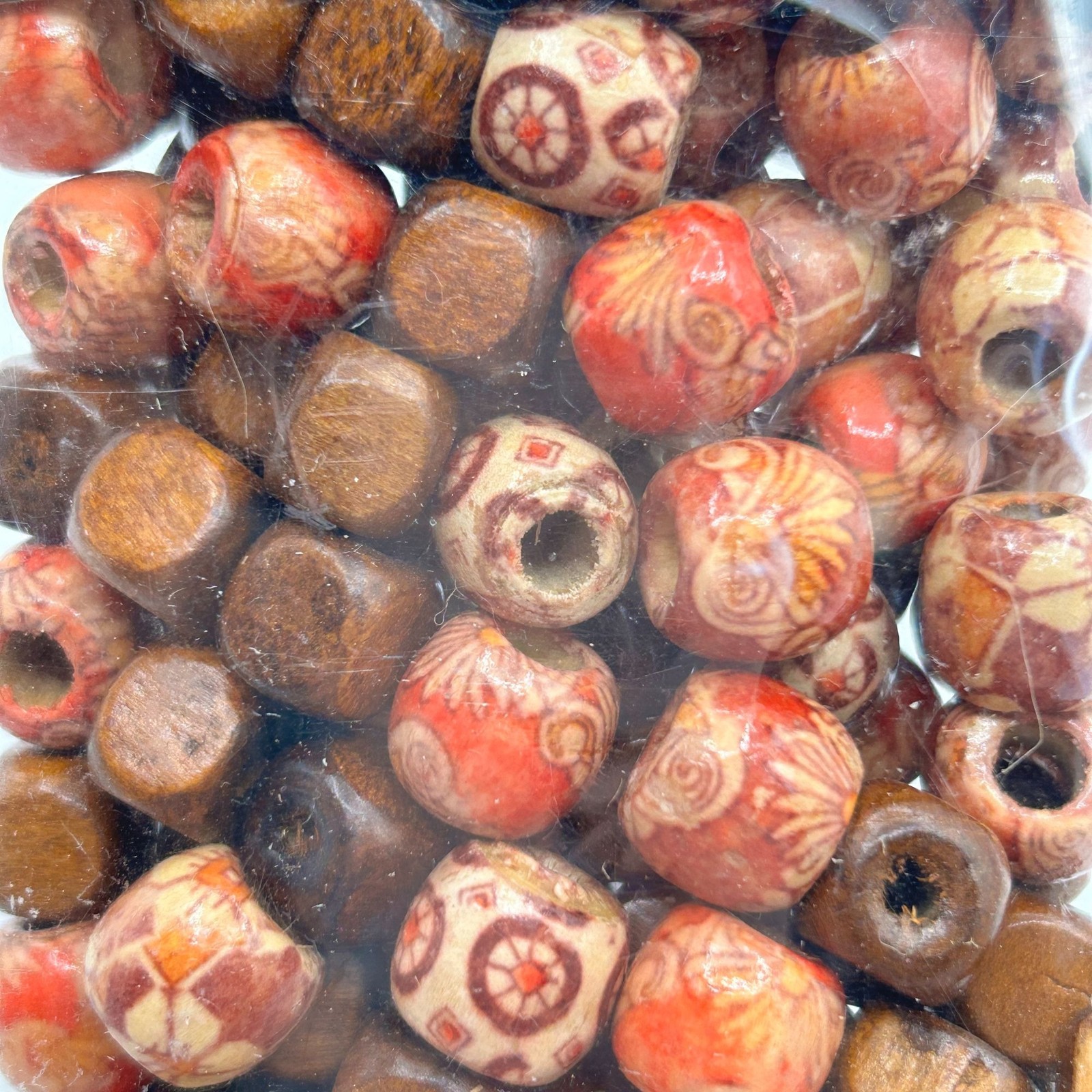 Wooden Printed Round Loose Beads Mix for Jewelry or Art Craft Projects