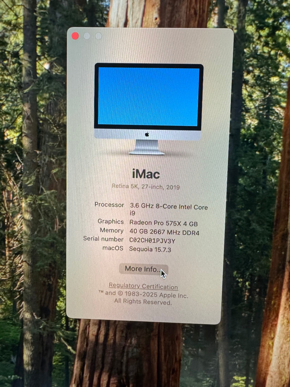 Apple iMac 27 A2115 5K 2019 9th Gen i9 3.6GHz 40GB RAM 250GB SSD