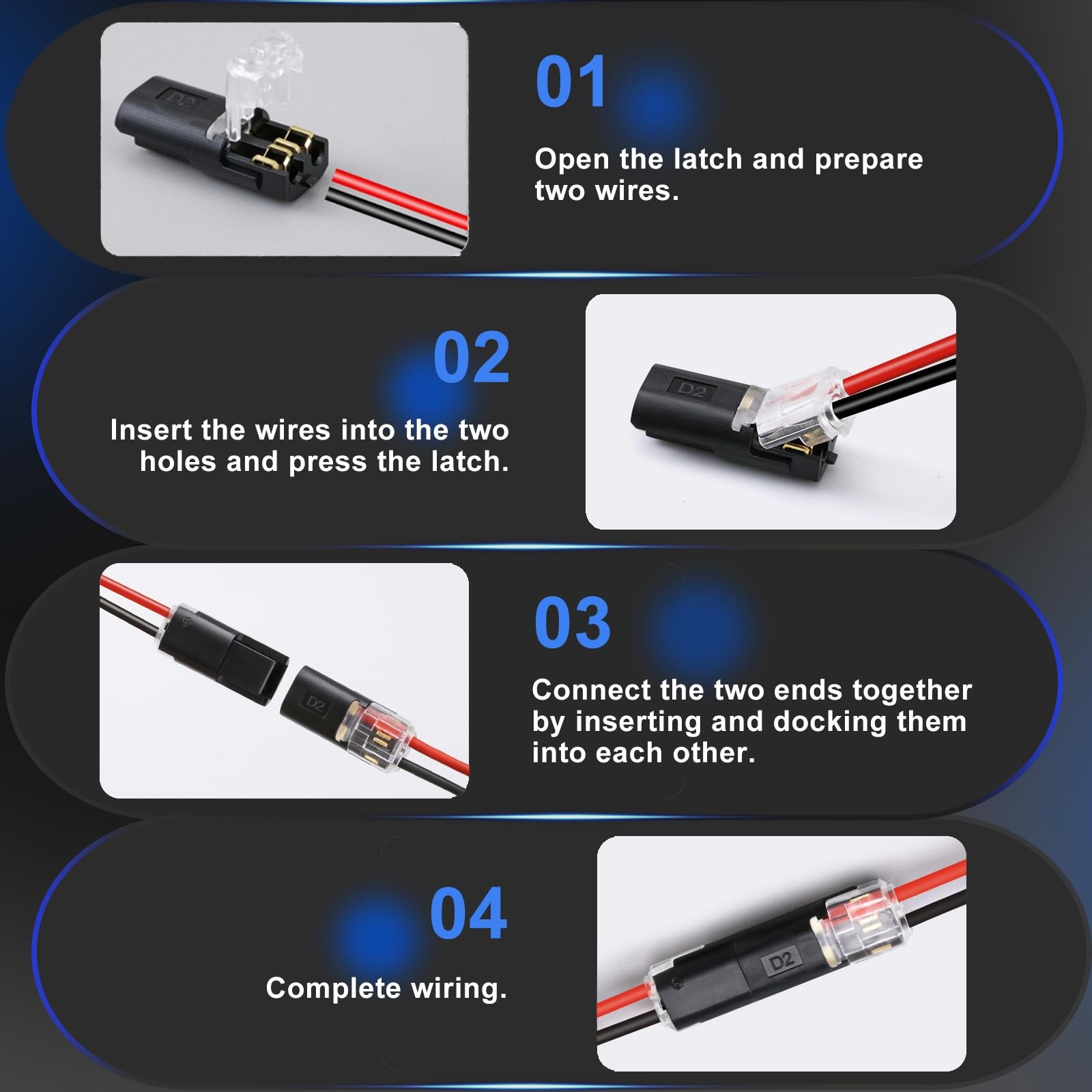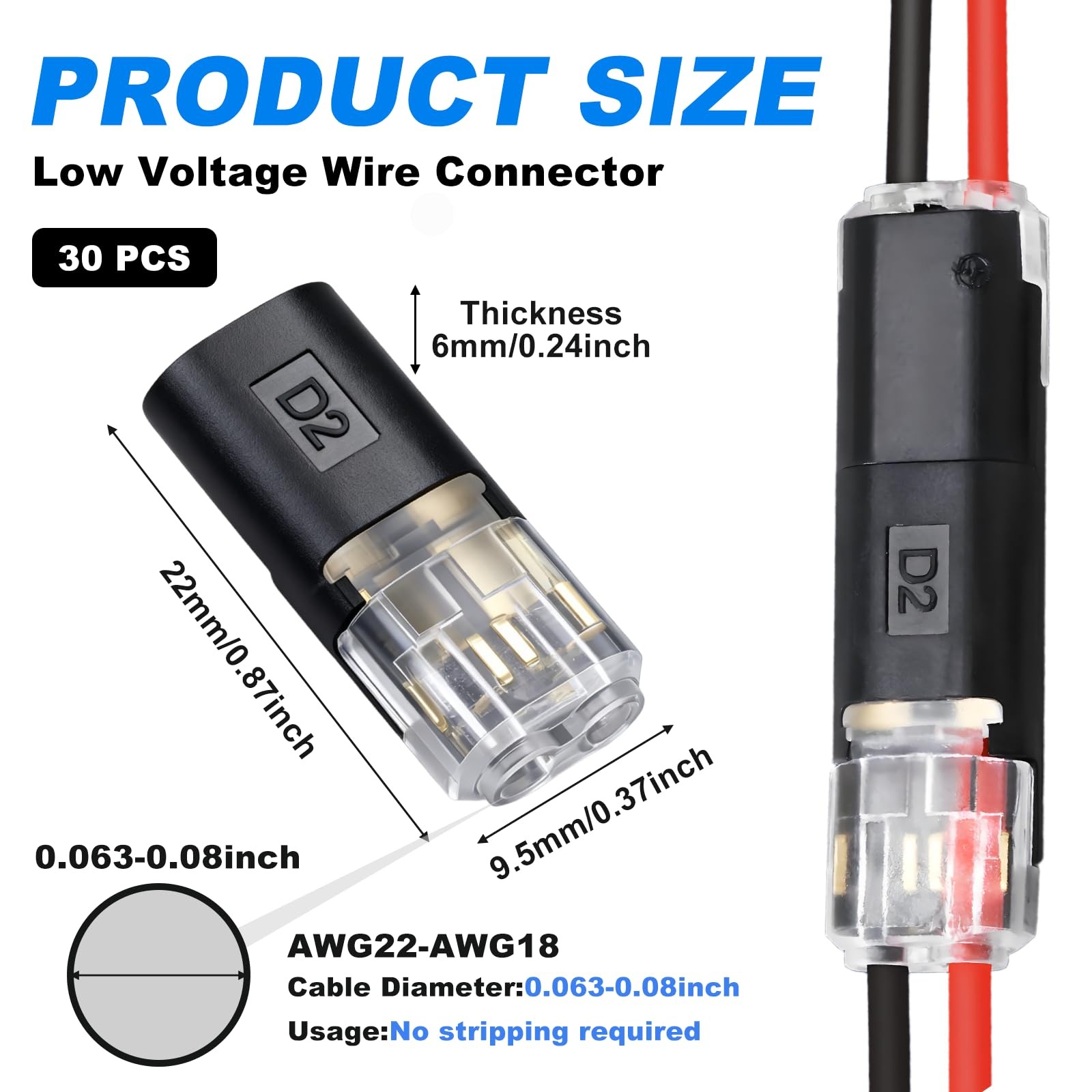 как выглядит 30PCS Double Wire Plug in Connector,Pluggable Low Voltage Wire Connector with... фото