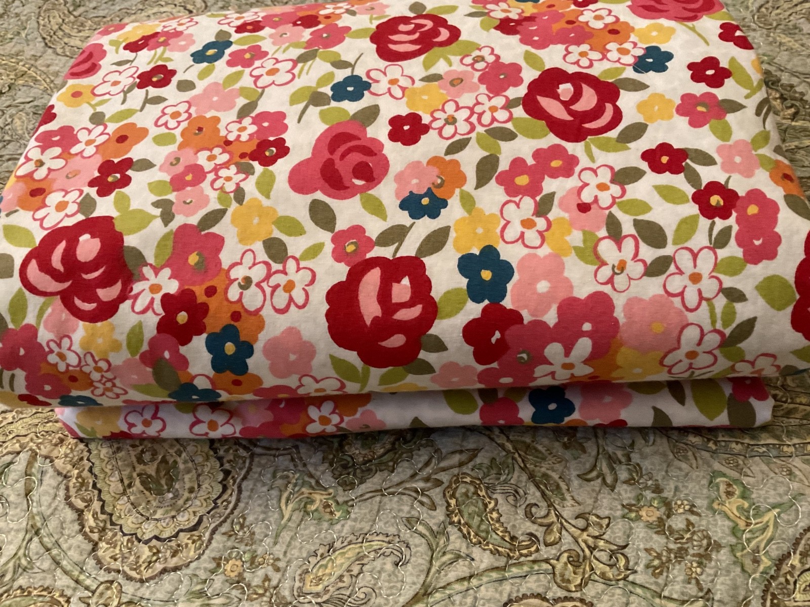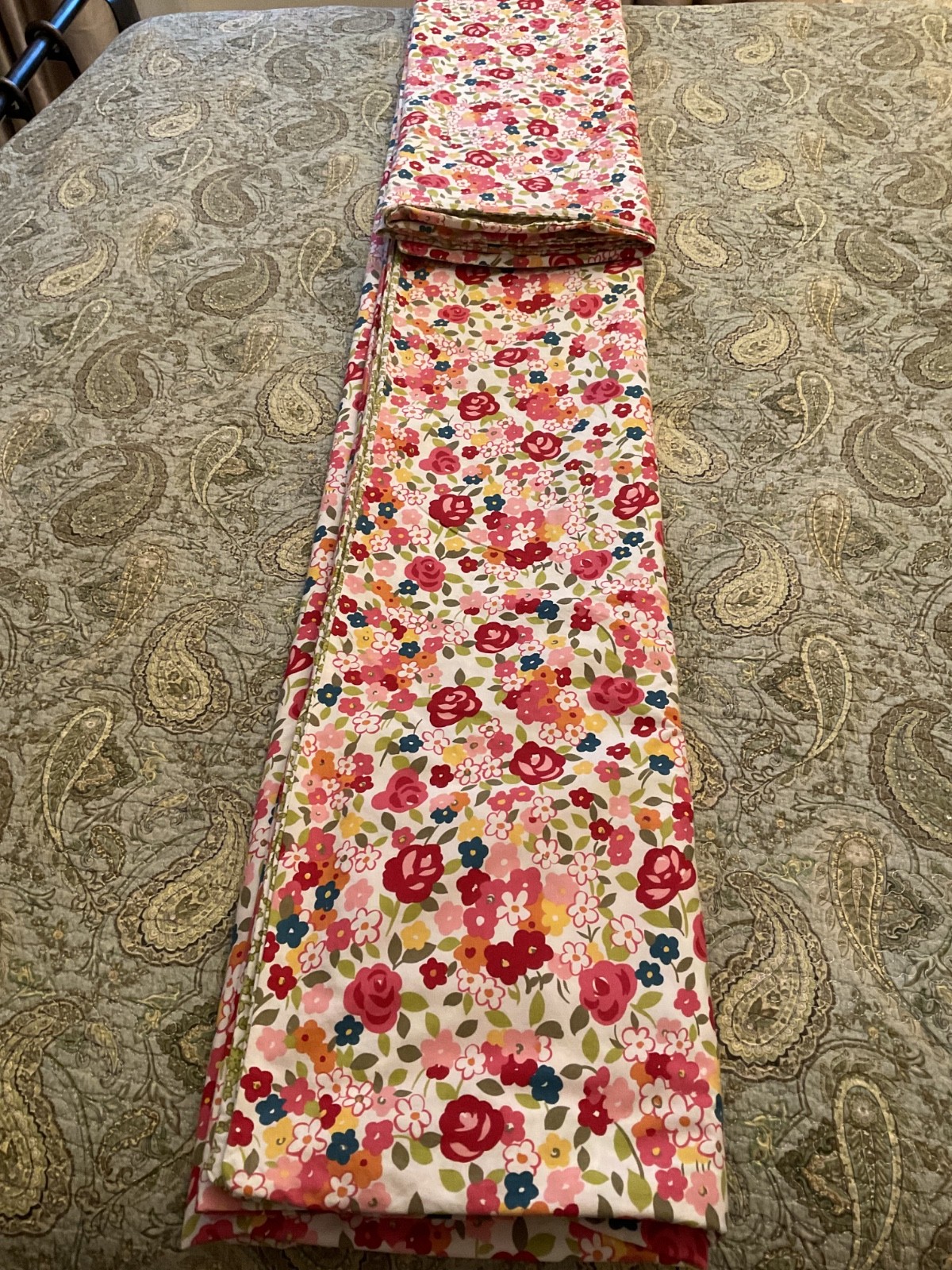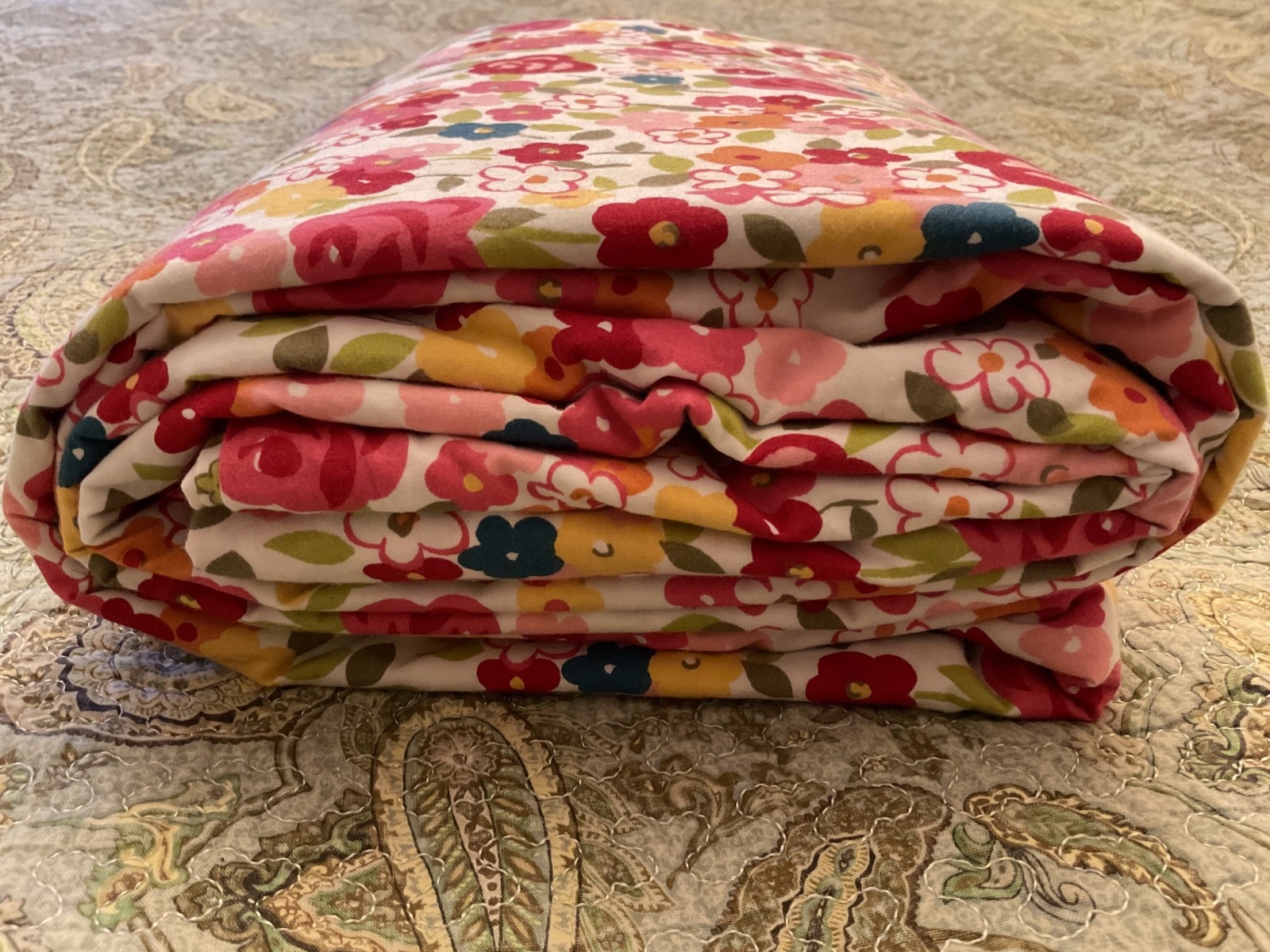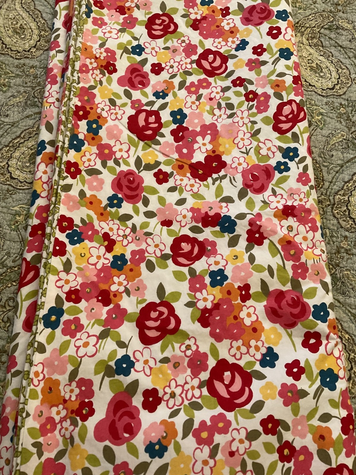 Pottery Barn Spring Floral Duvet Cover Red/Pink/Yellow rev Green Floral/Leaf EUC