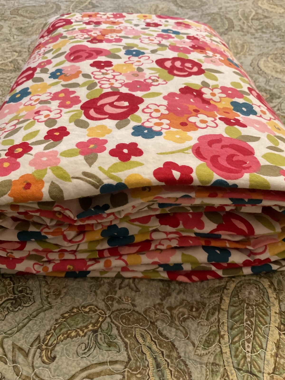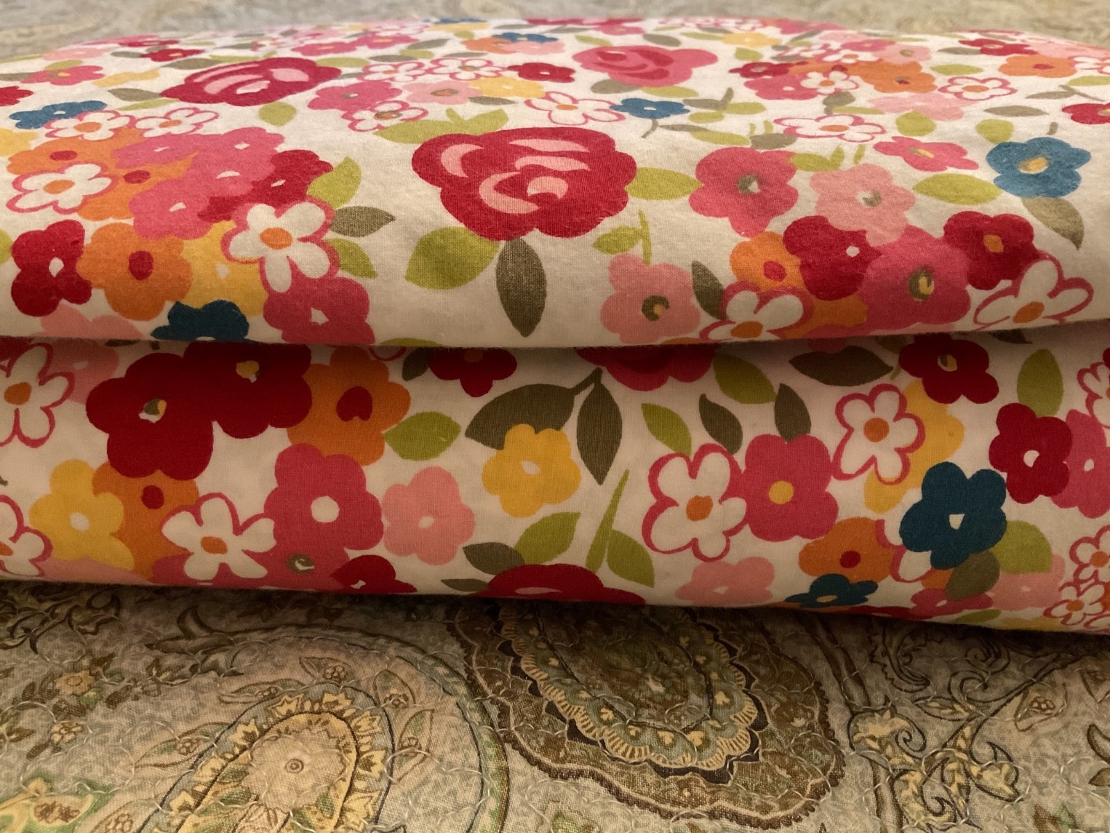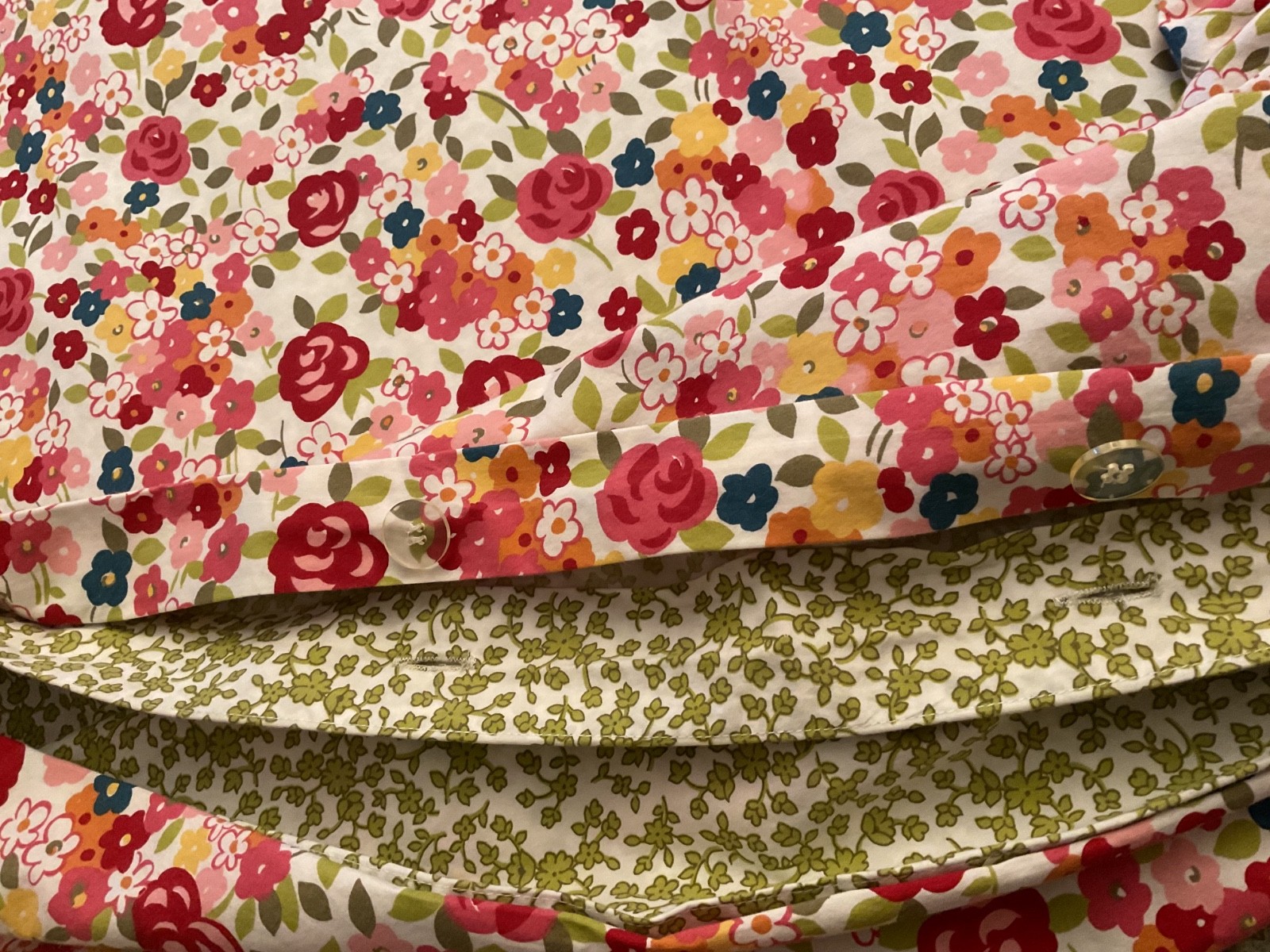 как выглядит Pottery Barn Spring Floral Duvet Cover Red/Pink/Yellow rev Green Floral/Leaf EUC фото