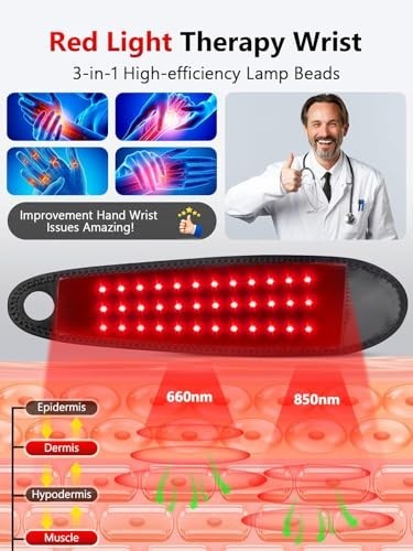 Wireless Red Light Therapy Wrist Brace with Heat Massage - Near Infrared Pad