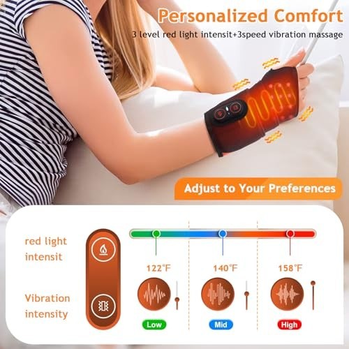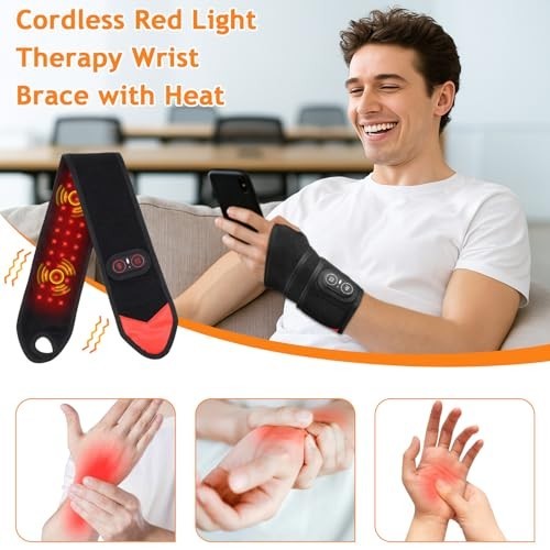 Wireless Red Light Therapy Wrist Hand Massager, 36 LED, 3 Heat Vibration Set