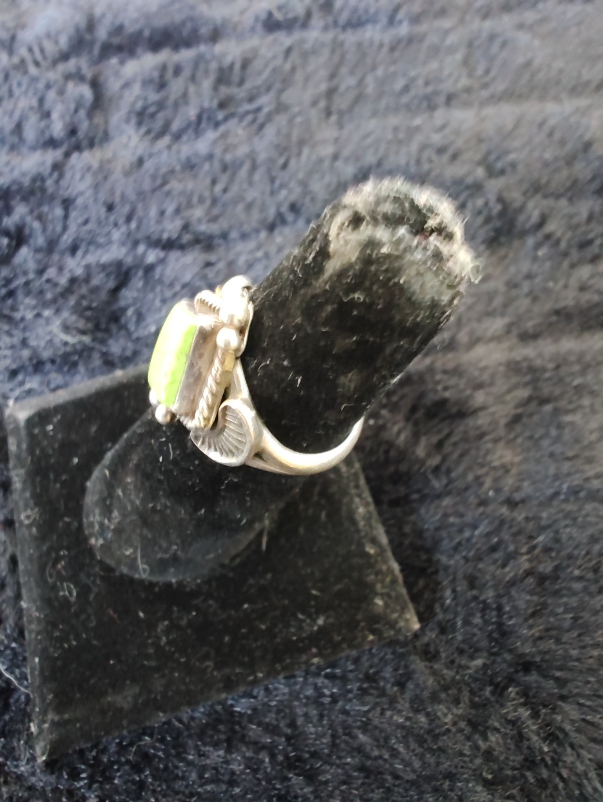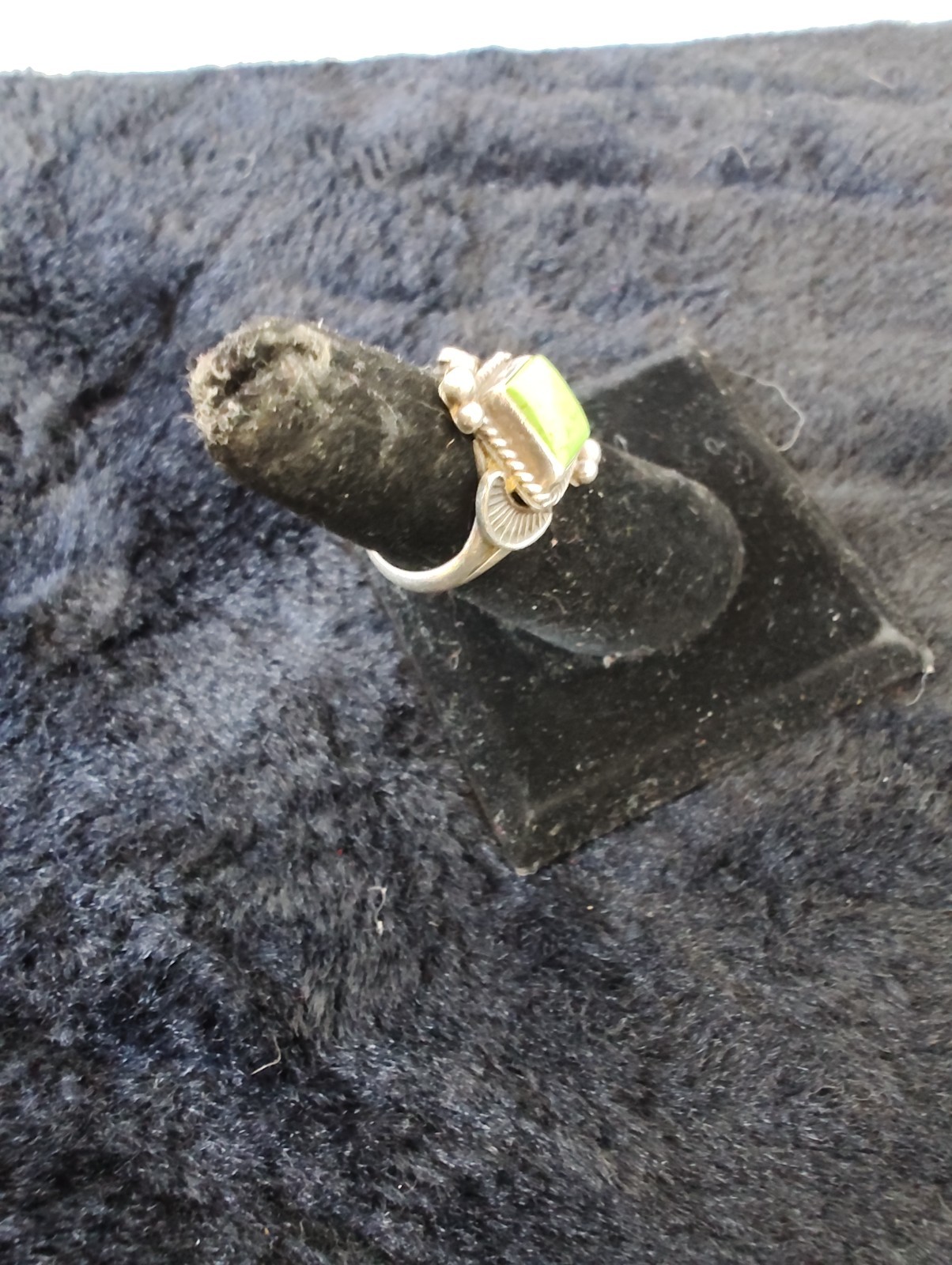 как выглядит Vintage Sterling Silver Green Turquoise Ring Size 6 Beaded Navajo Style фото