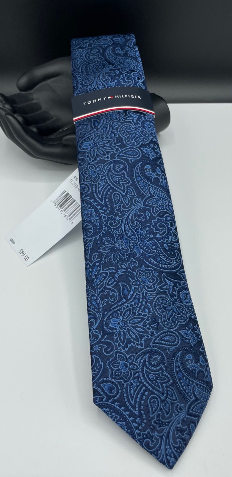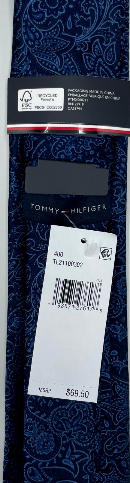 Tommy Hilfiger Men's Silk Blend Tie Navy Blue Paisley NEW MSRP: 69.50
