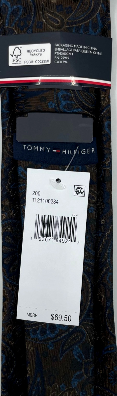 Tommy Hilfiger Men's Silk Blend Tie Brown Paisley NEW MSRP: 69.50