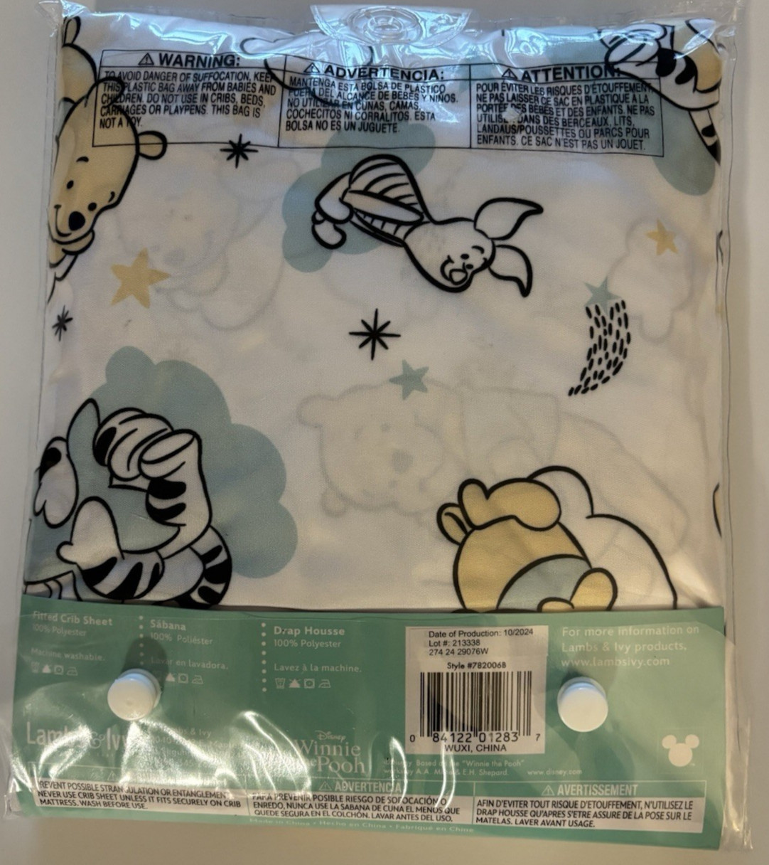 как выглядит DISNEY BABY Fitted Crib Sheet 2024 Winnie The Pooh Hugs 28" x 52" NEW In Pkg фото