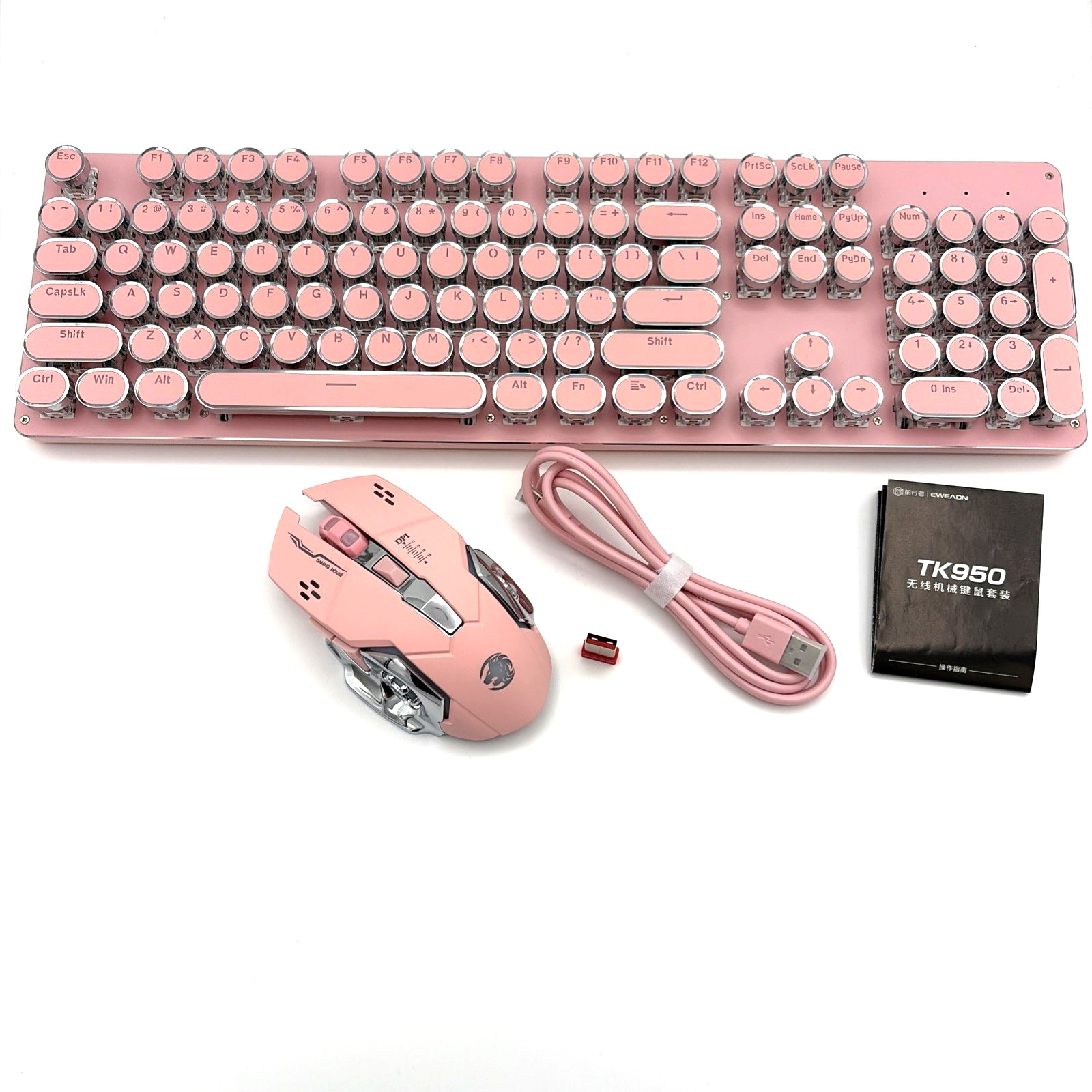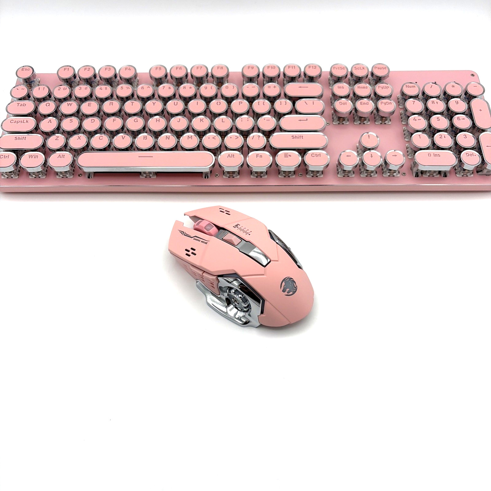 Wireless Retro Mechanical Keyboard Mouse Combo 3-Mode Backlit Pink