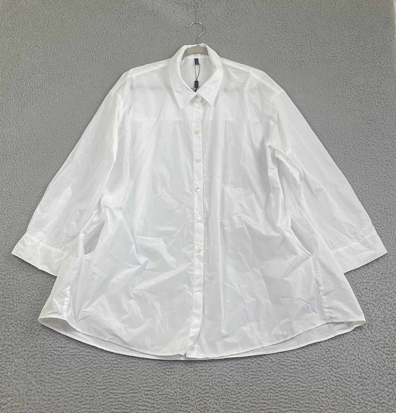 Katharina Hovman 495 Oversize Button Down Shirt Women Size 16 White Taffeta NEW