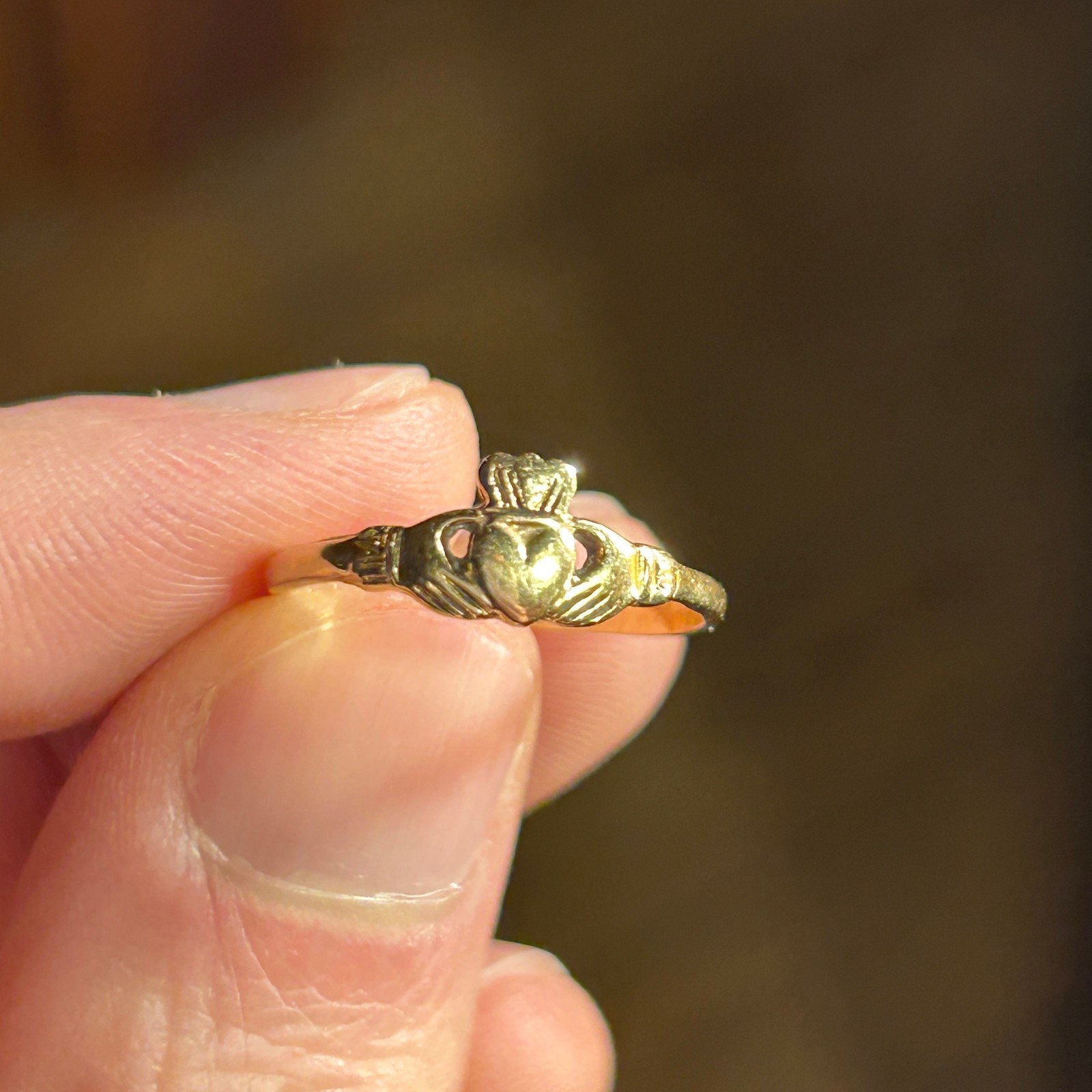 Dainty Irish Claddagh Ring, size 5, solid 14k gold, small, made in Ireland