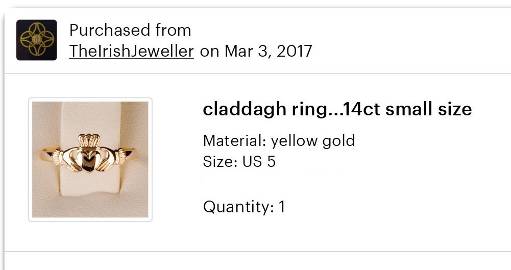 как выглядит Dainty Irish Claddagh Ring, size 5, solid 14k gold, small, made in Ireland фото