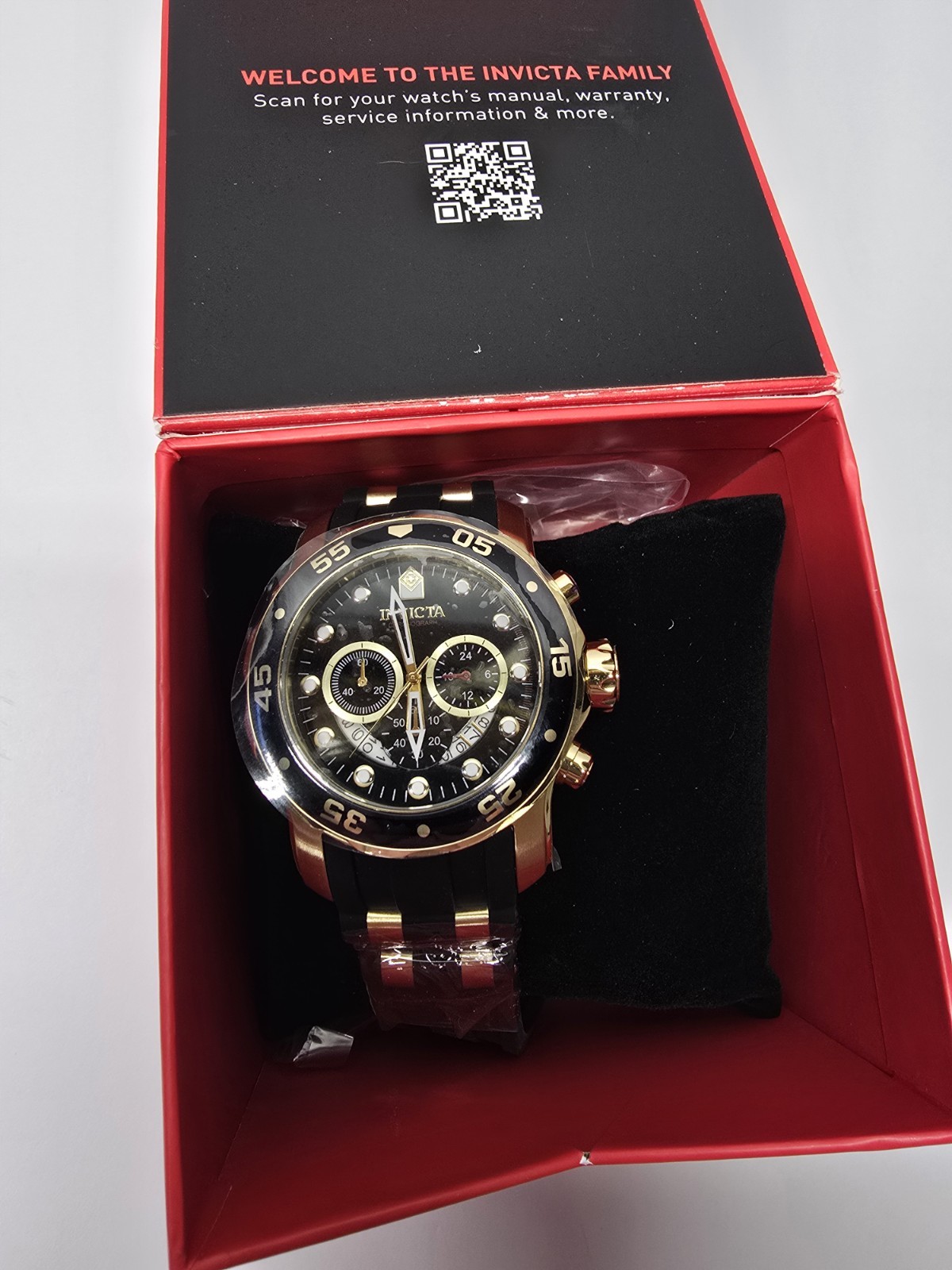 Invicta Mens PRO DIVER SCUBA Chronograph Black Dial Gold Watch 6981 249 Retail