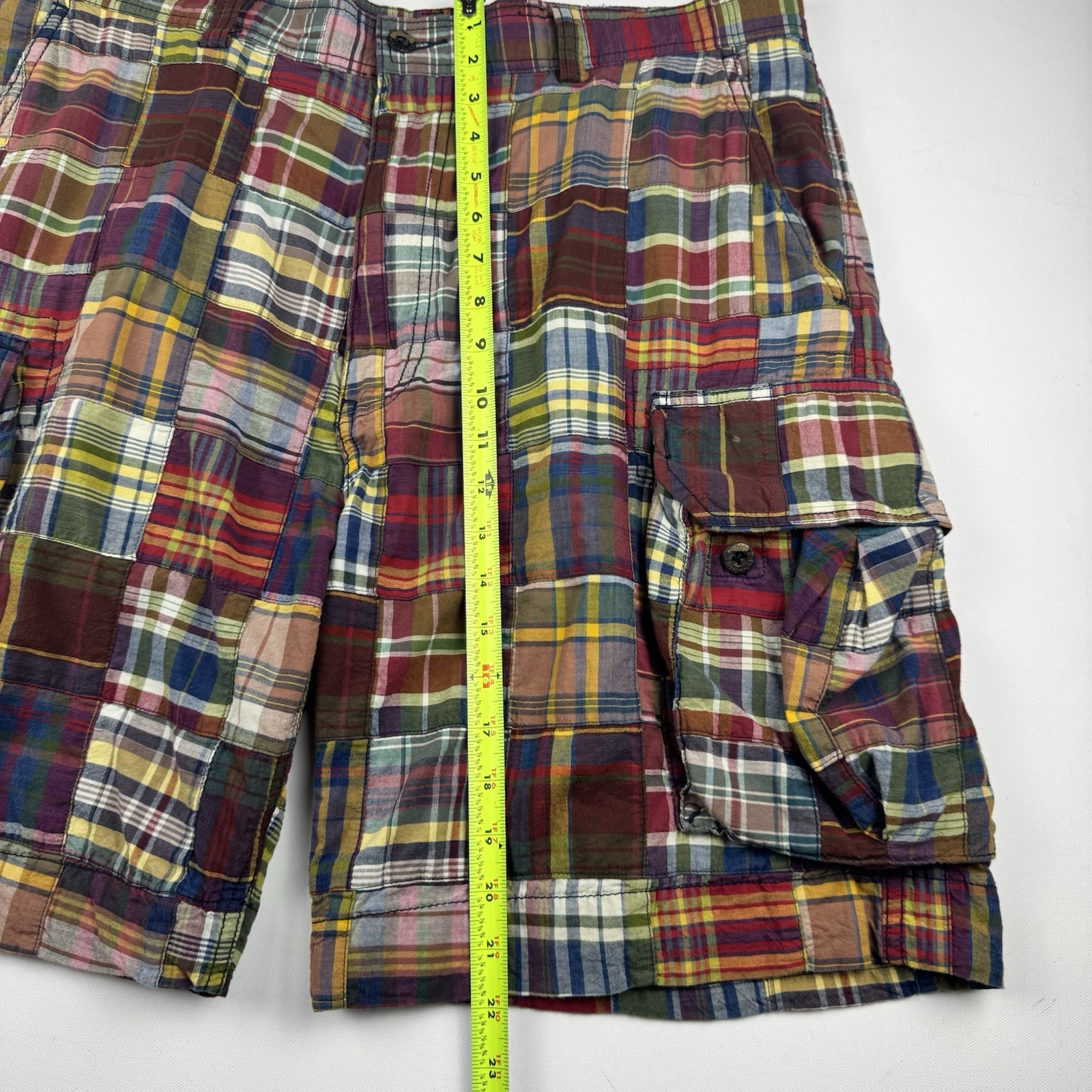 POLO RALPH LAUREN Cotton Madras Patchwork Flat Front Cargo Shorts SZ 38