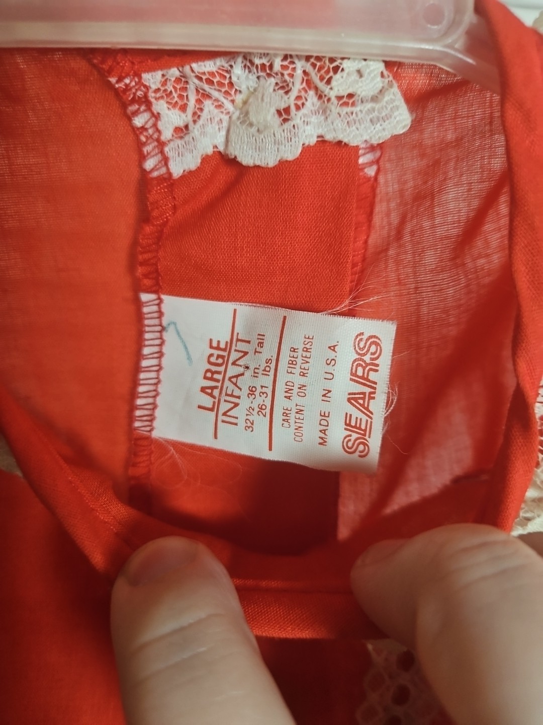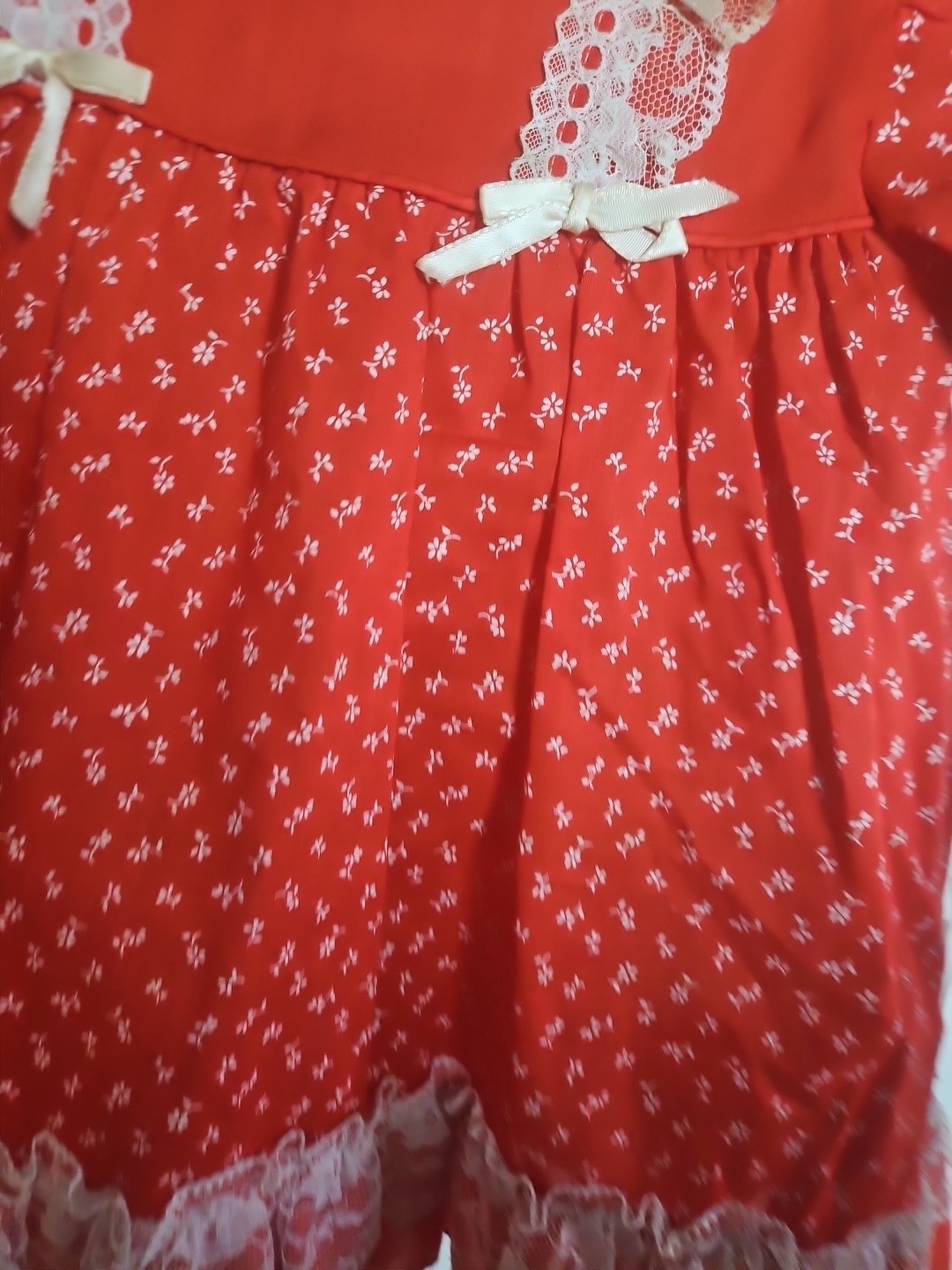 VTG Sears Red And White Baby Dress Ruffle Lace Short Sleeve Size Large 26-31 Lbs