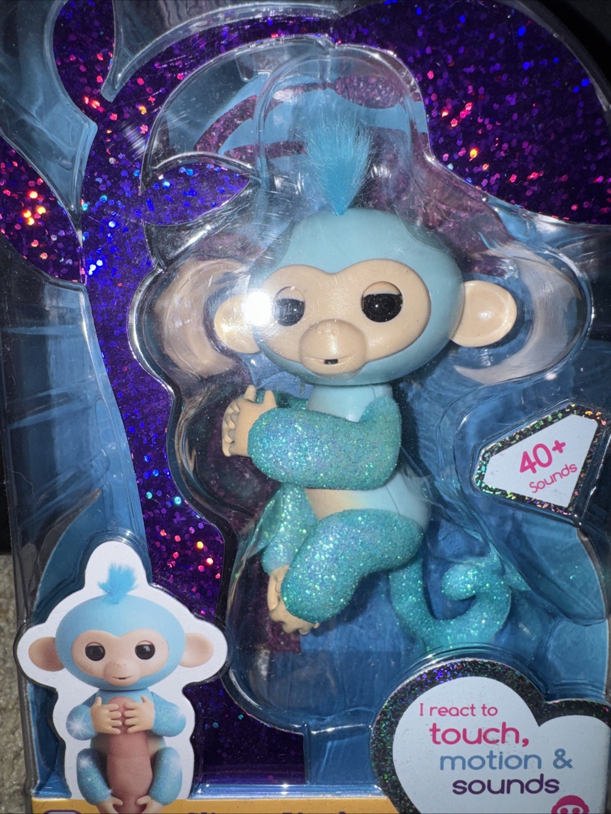 как выглядит Fingerlings Glitter Monkey - Amelia Turquoise Blue Glitter - Interactive Baby фото