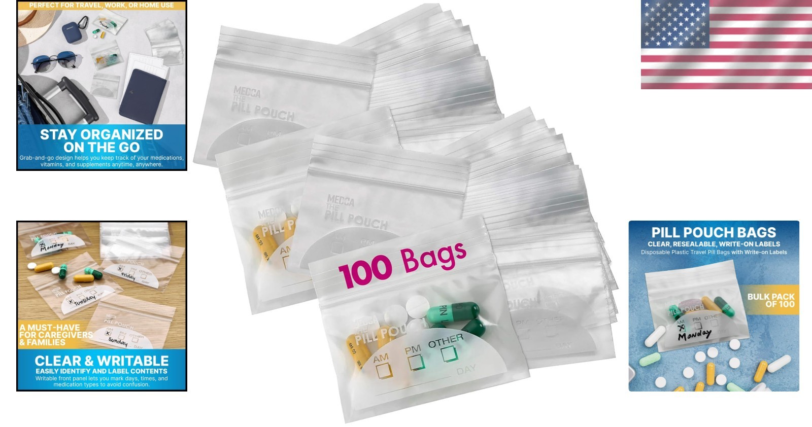 Pill Baggies Pack of 100 Airtight Seal Clear Travel Bags with Write on Labels