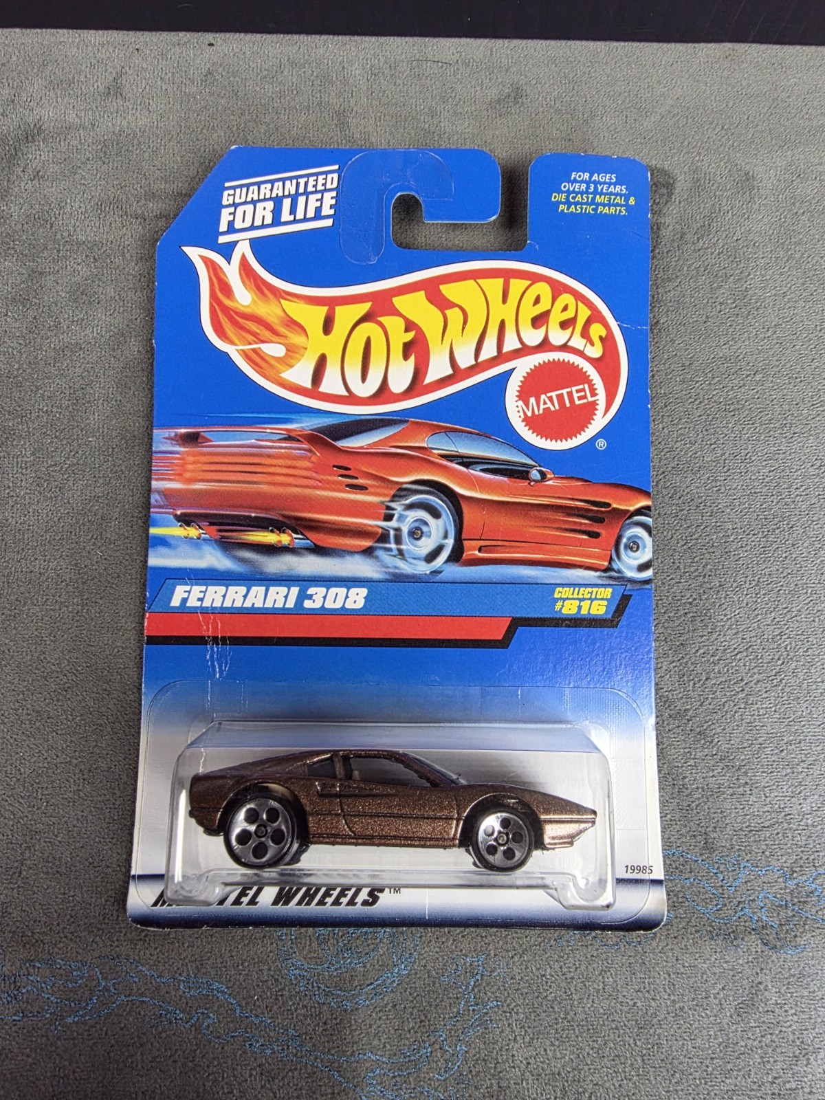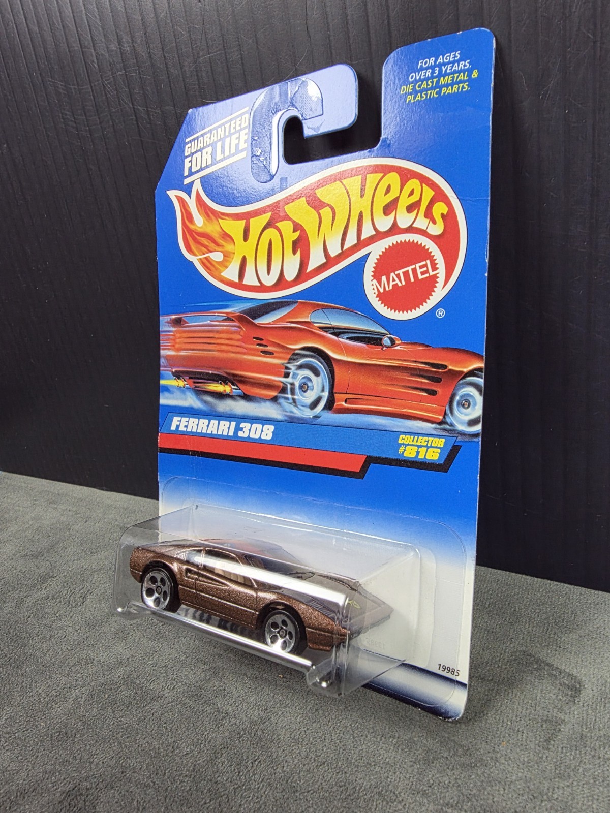 HOT WHEELS FERRARI 308. 1998 816, BROWN, HO5 WHEELS ON CARD Collectors ED C-1