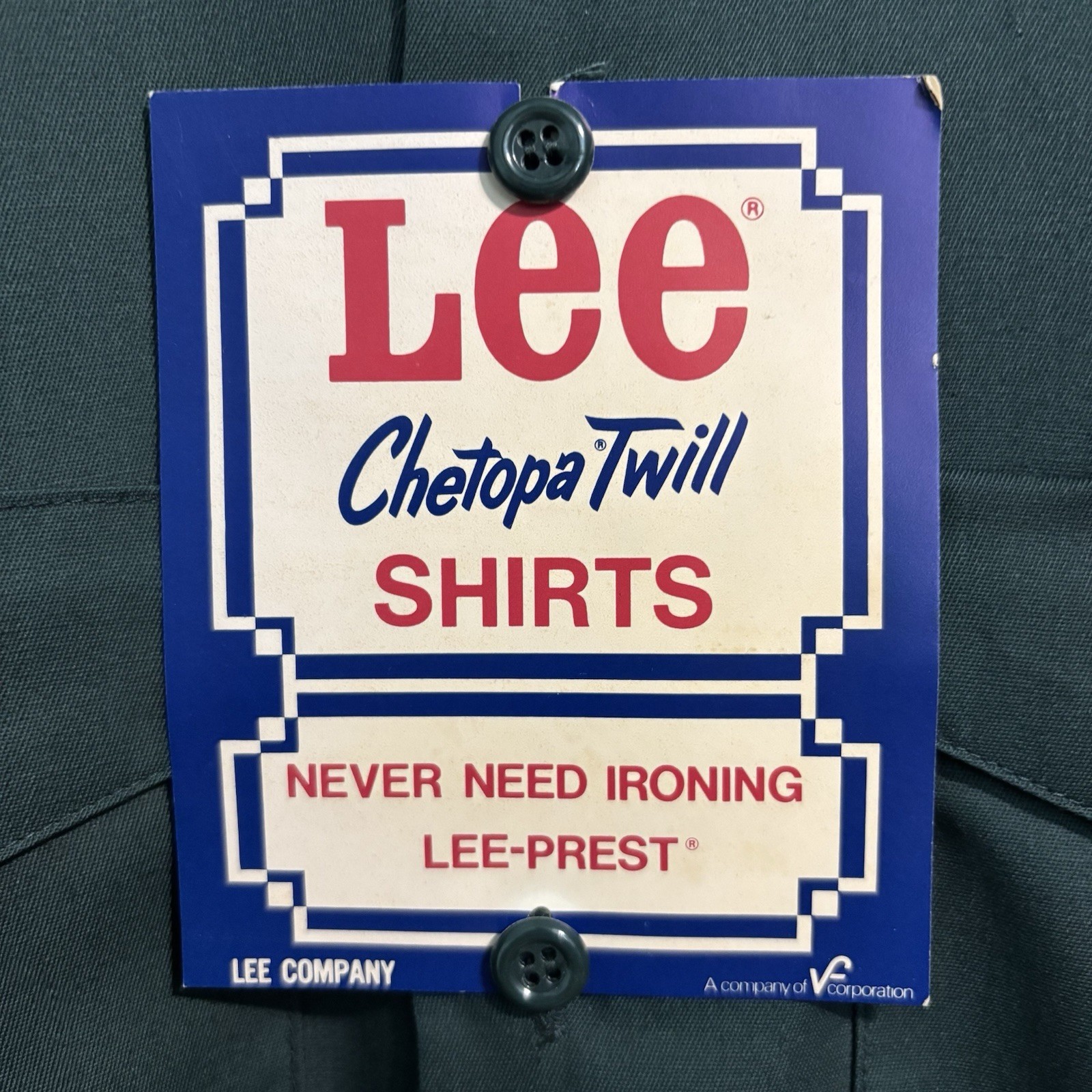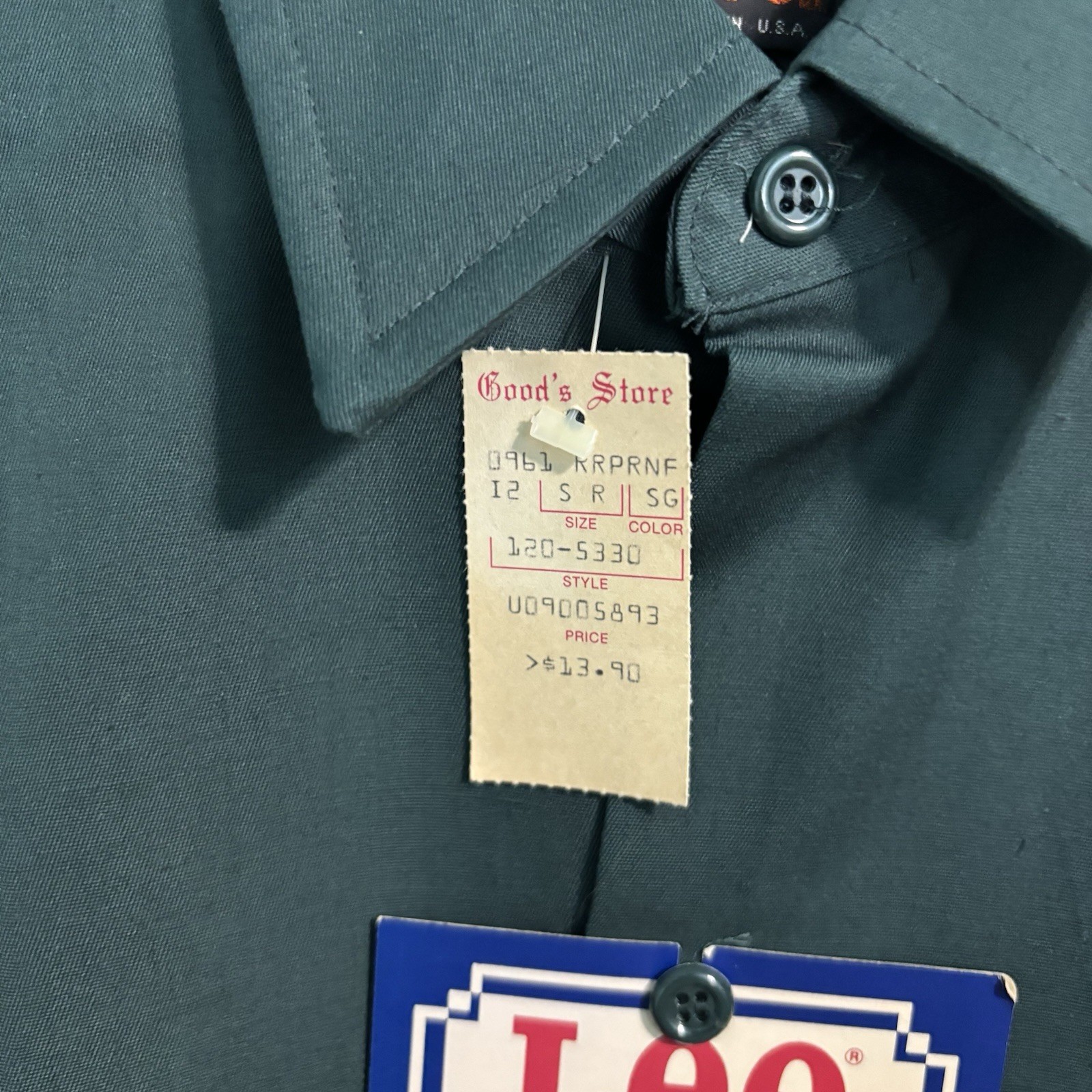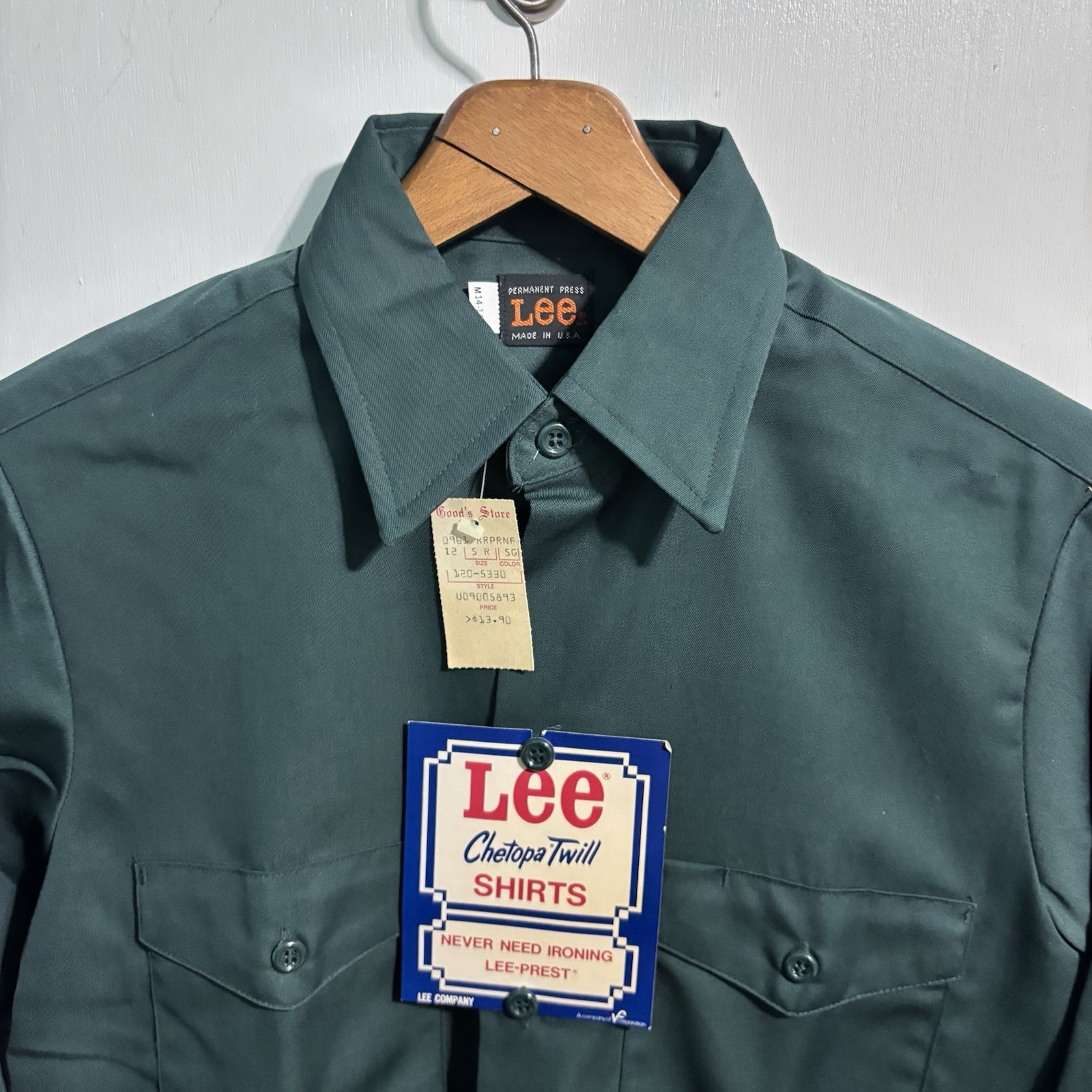 Vintage 1970s Lee Chetopa NOS work shirt twill long sleeve Green Sz M Deadstock