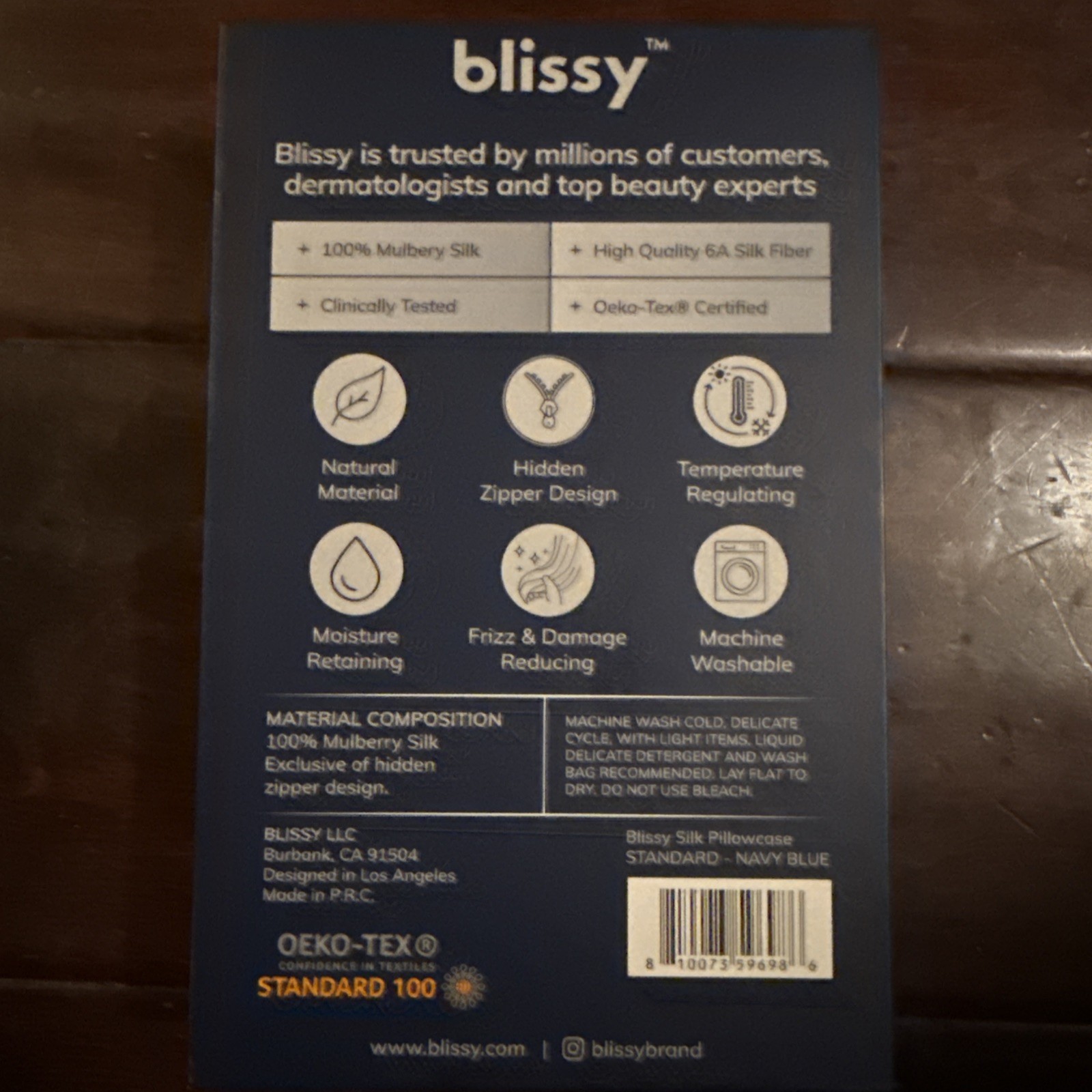 как выглядит Blissy 100 Mulberry Silk ONE STANDARD Pillowcase Navy Blue фото