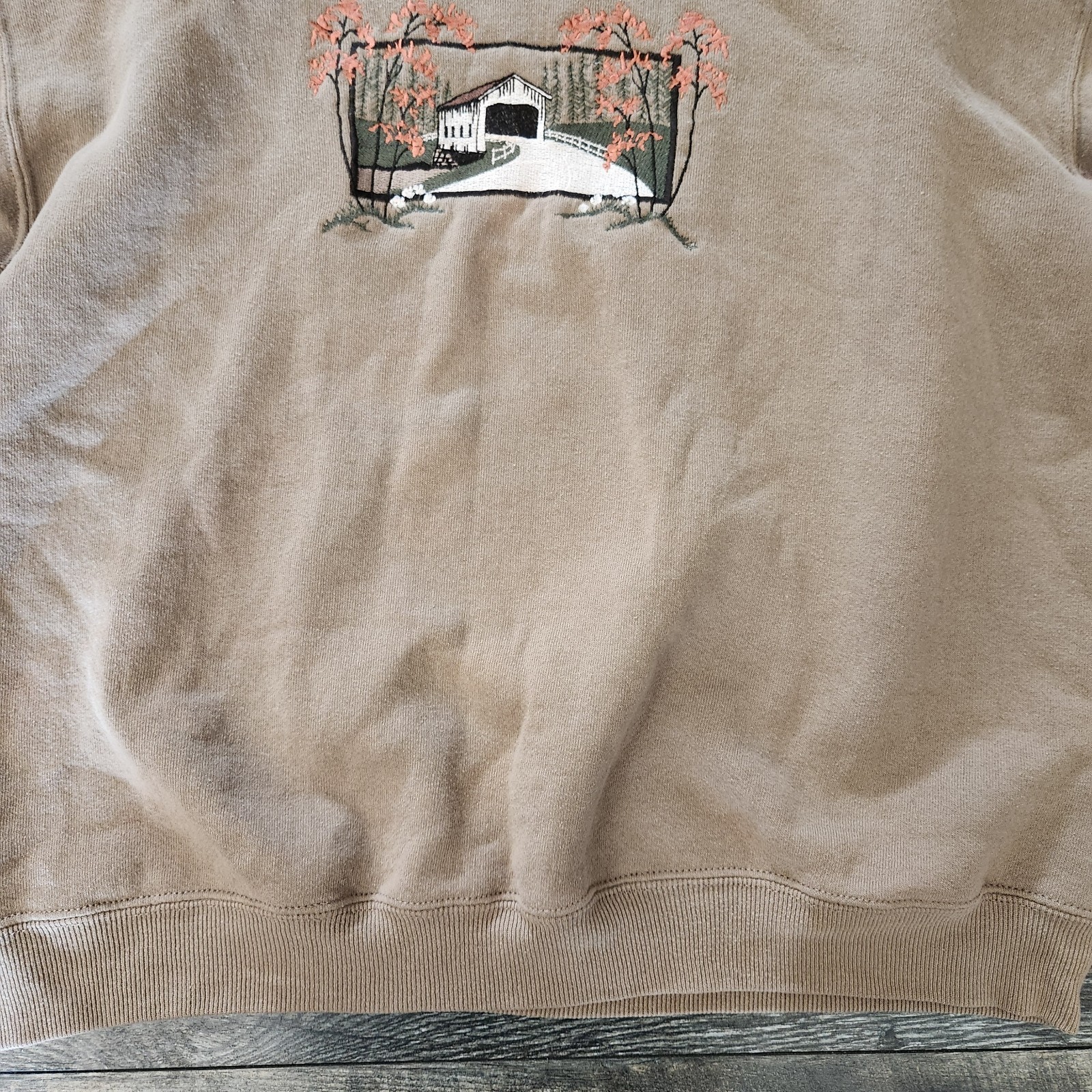 как выглядит Vintage 90s Covered Bridge Crewneck Sweatshirt Sz Large Embroidered Nature USA фото