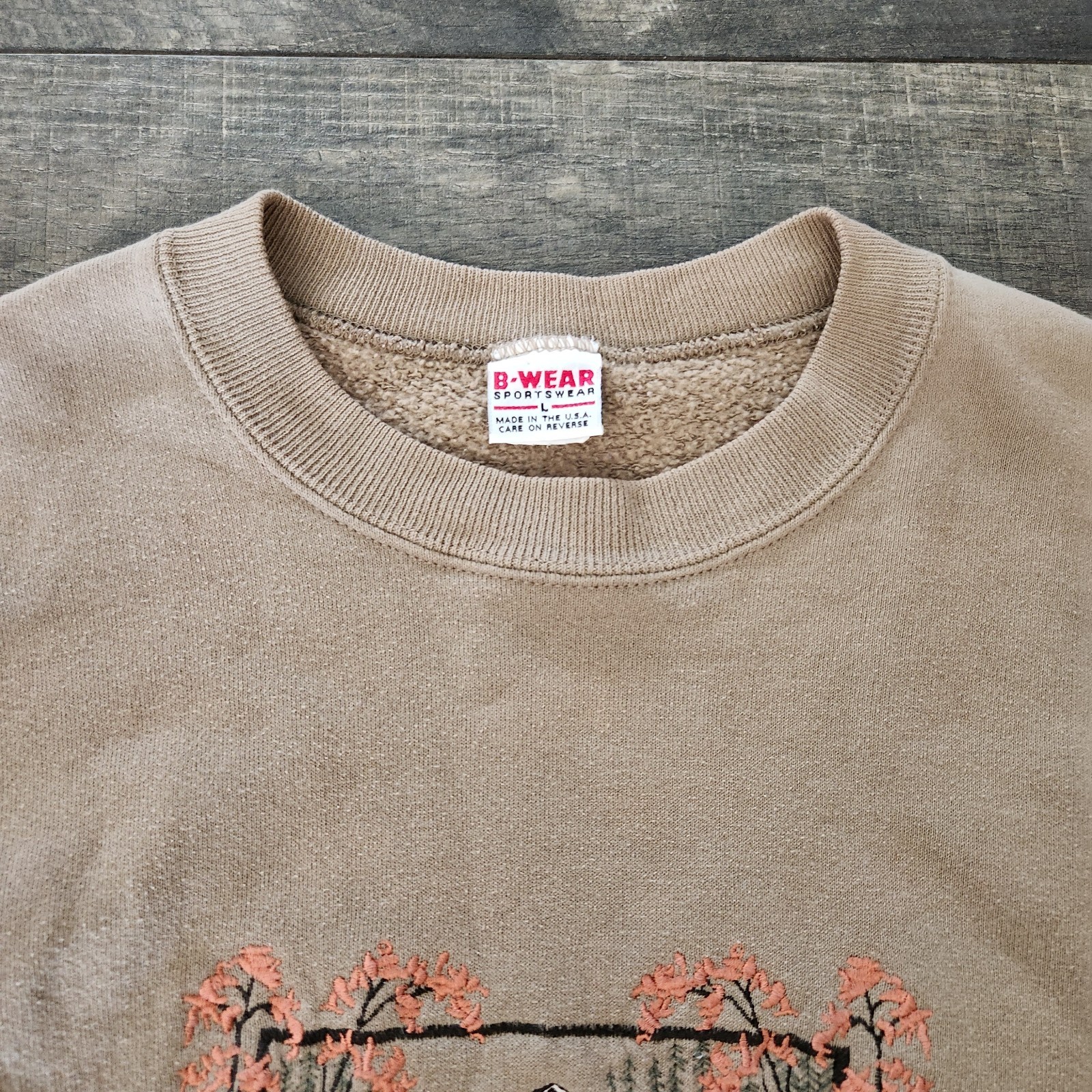 Vintage 90s Covered Bridge Crewneck Sweatshirt Sz Large Embroidered Nature USA