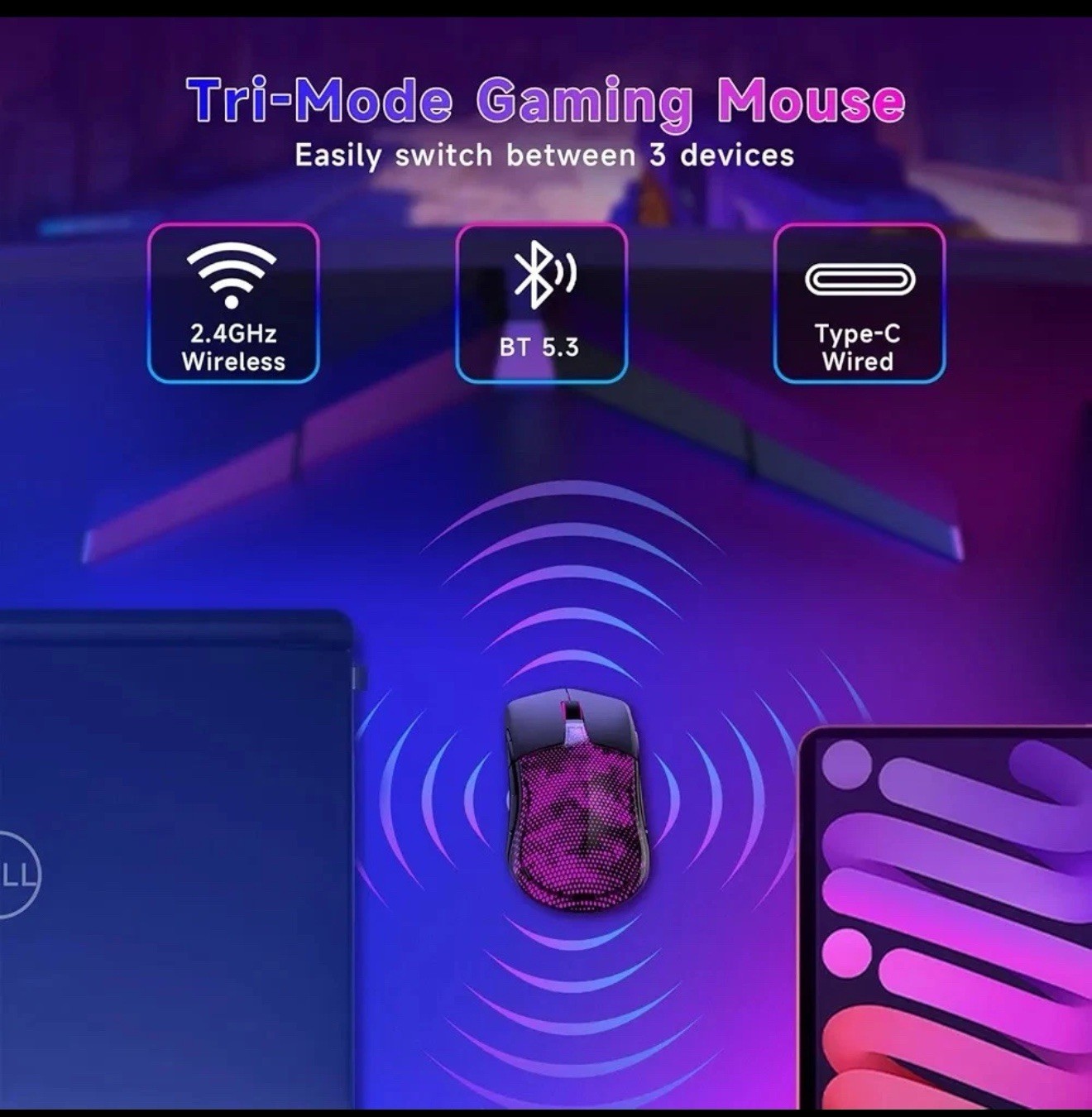 Wireless Gaming Mouse, 12000 DPI, Tri-Mode 2.4G/USB-C/Bluetooth 5.3, RGB...