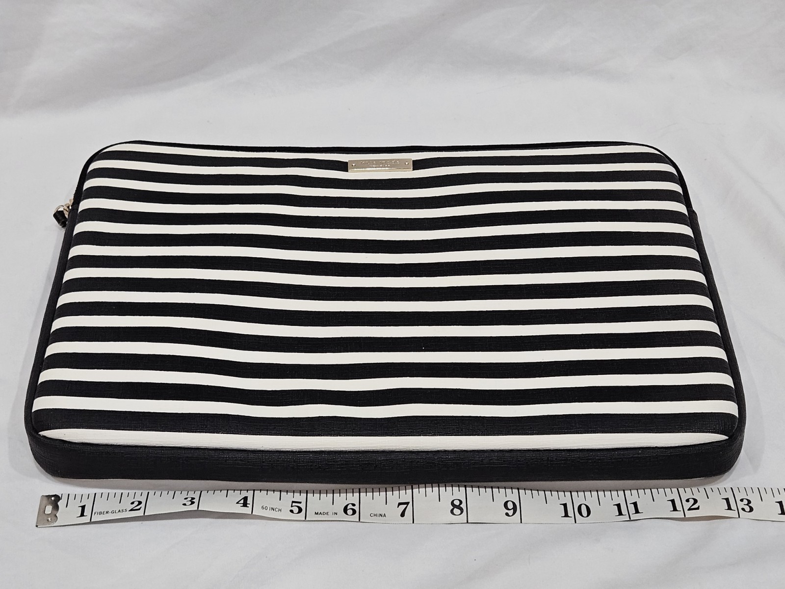 Kate Spade Laptop Sleeve 13 Black White Stripe Padded Zip Case