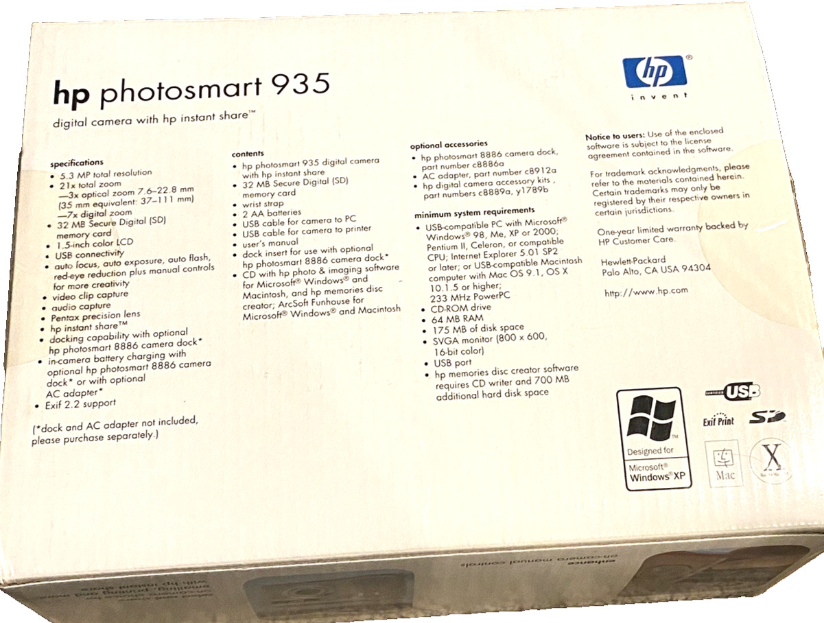 HP PHOTOSMART 935 DIGITAL CAMERA WITH CHARGER AND ALL ACCESSORIES Last One