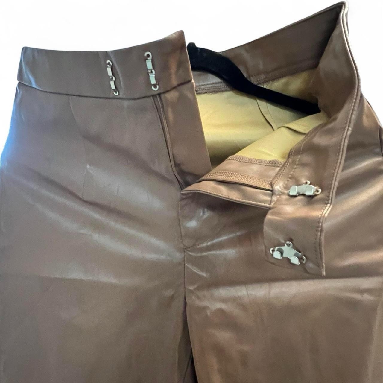 как выглядит Fashion Nova Brown Faux Leather Dress Pants, Straight Leg, Womens M фото