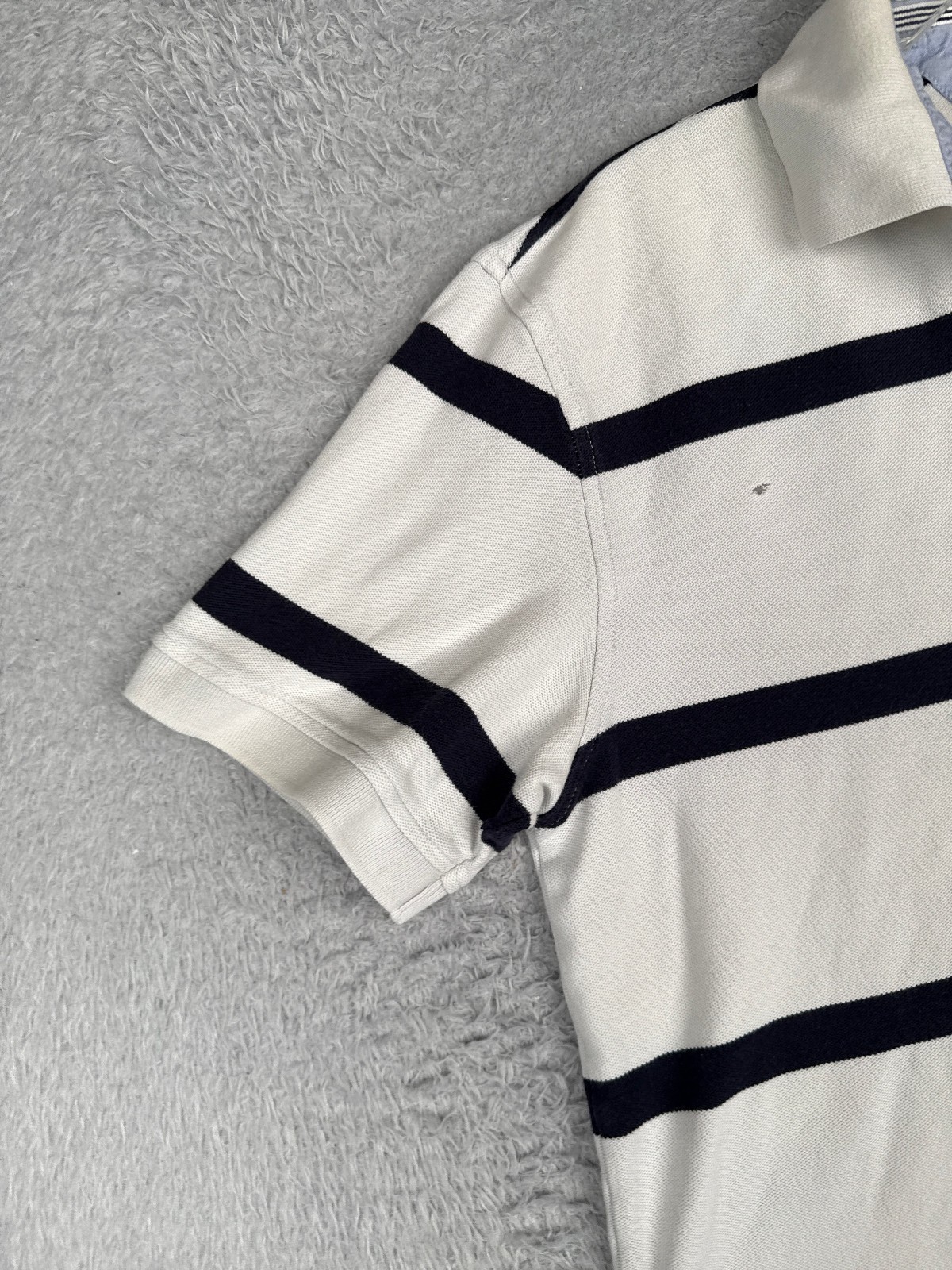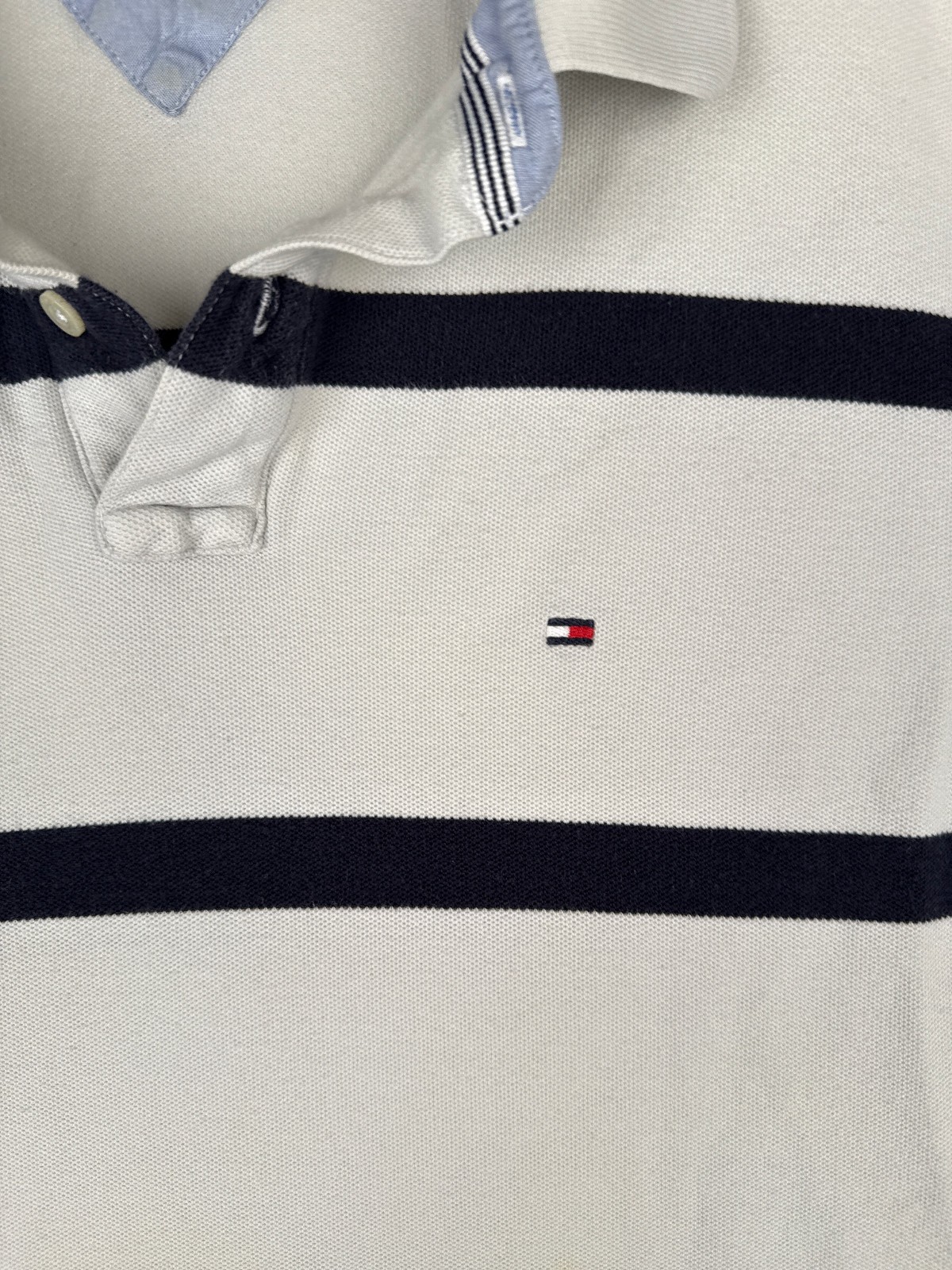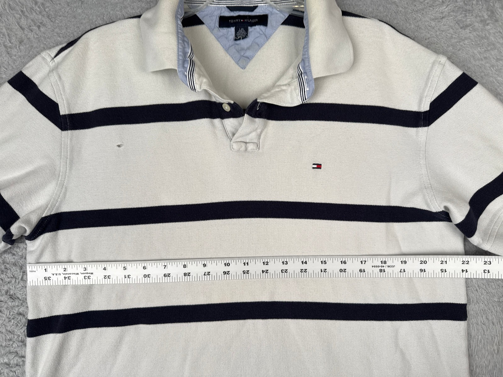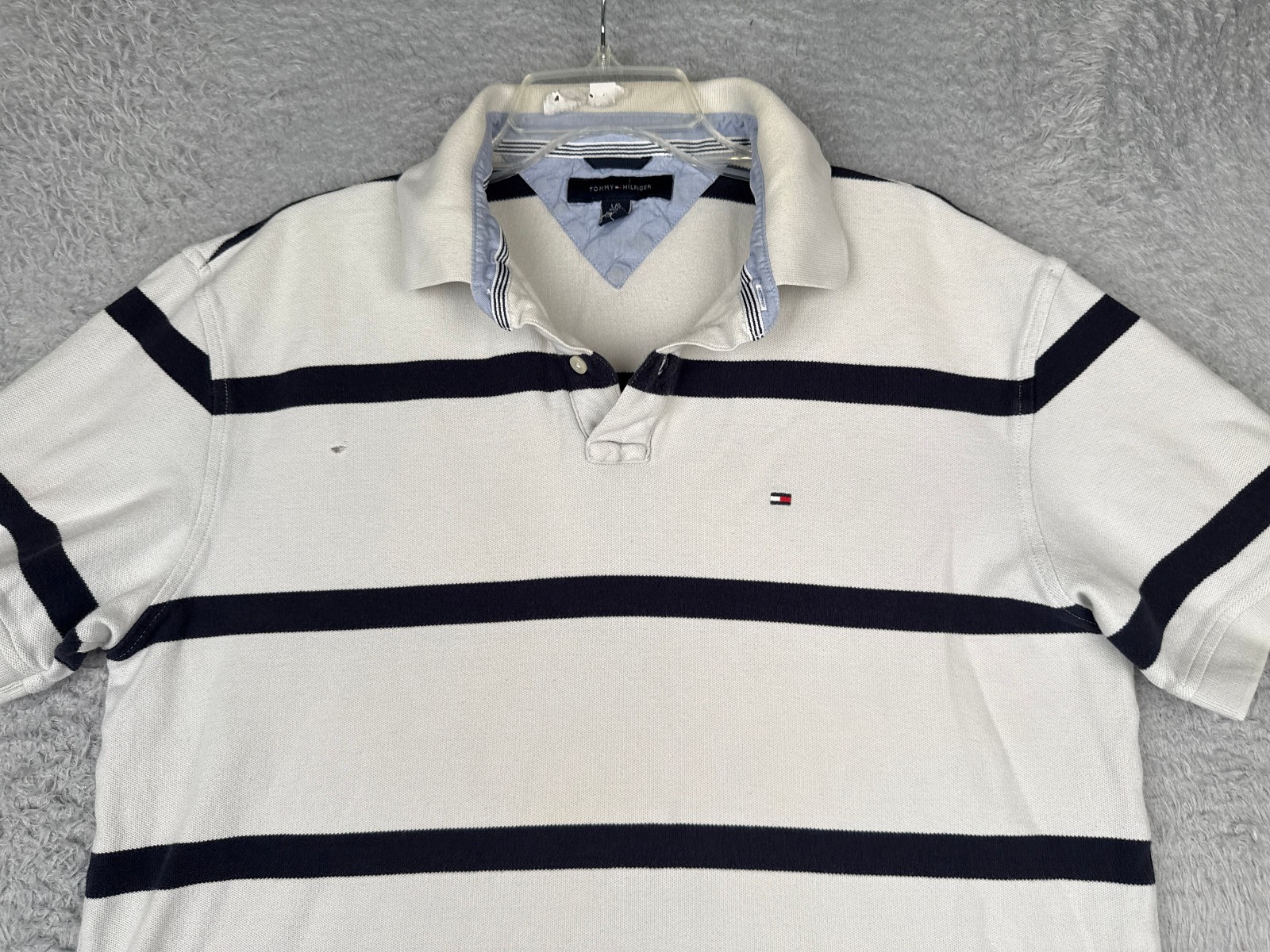 Tommy Hilfiger Polo Shirt Men Large Blue White Stripe Short Sleeve Cotton