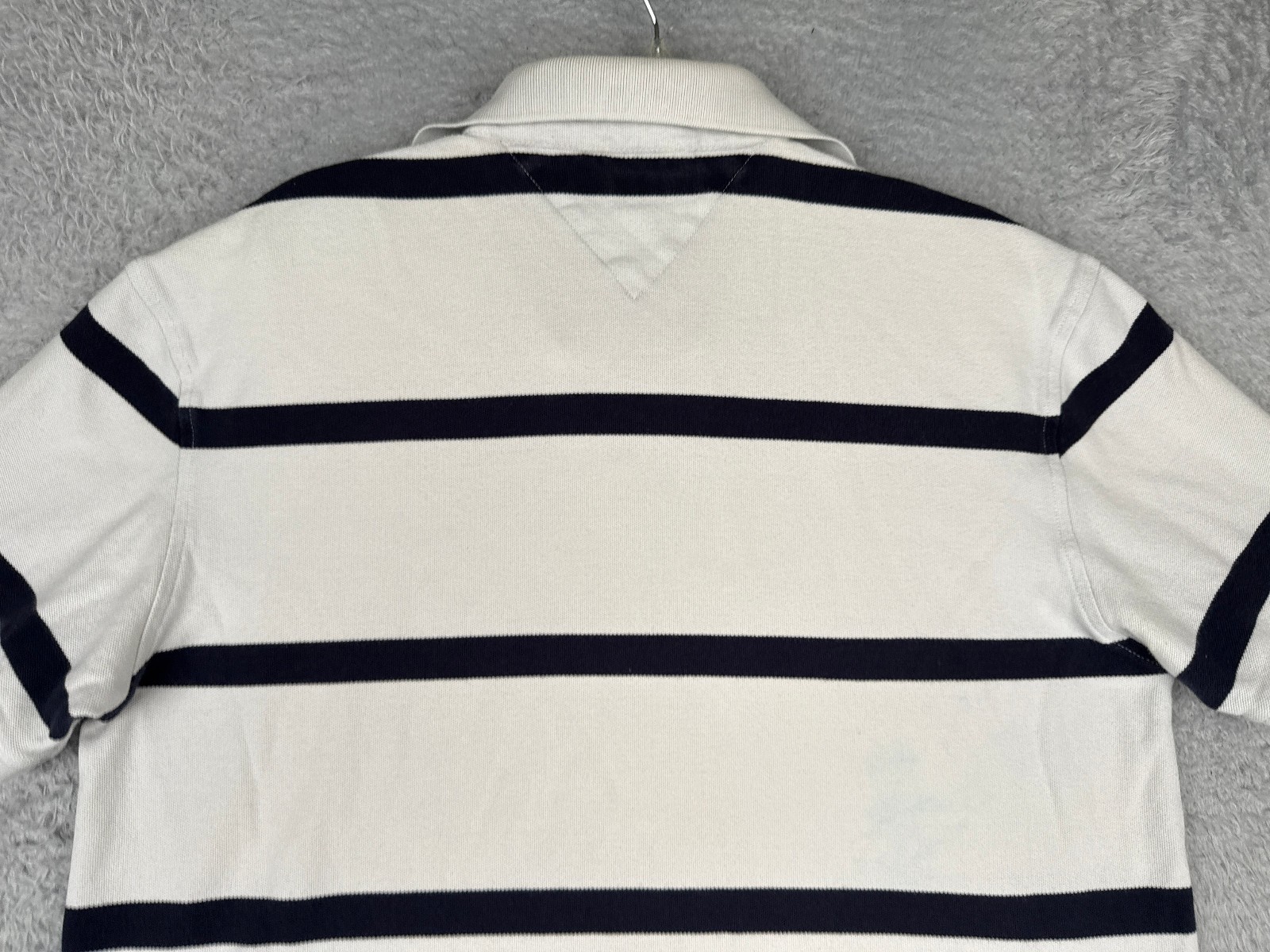 как выглядит Tommy Hilfiger Polo Shirt Men Large Blue White Stripe Short Sleeve Cotton фото