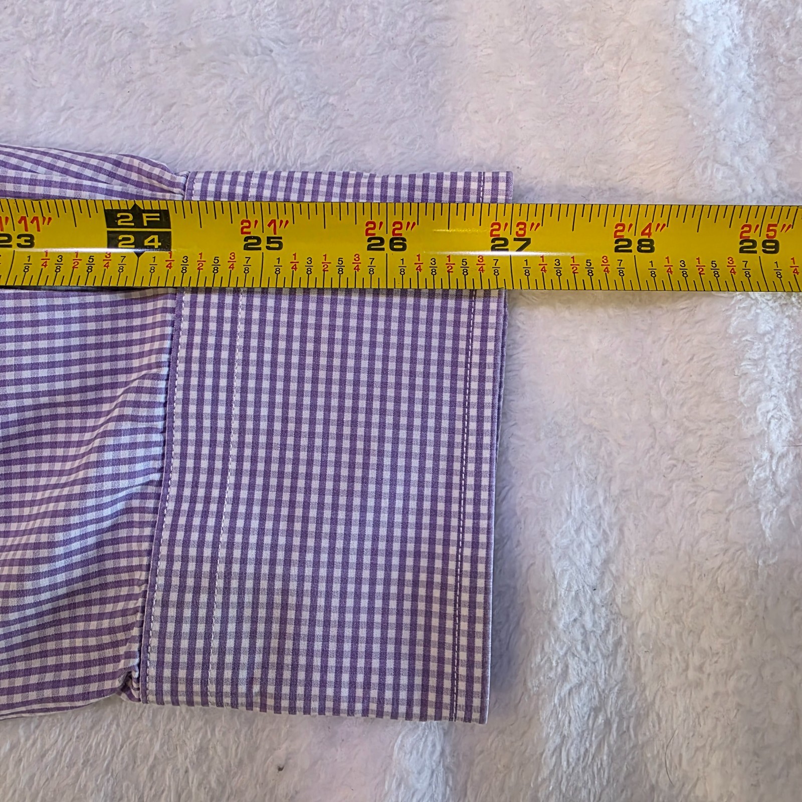 Purple Check David Donahue Long Sleeve Button Up Dress Shirt Trim Size 17 36/37