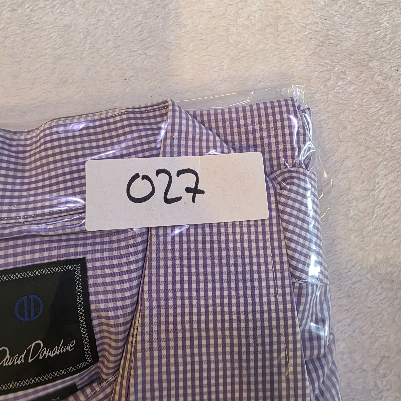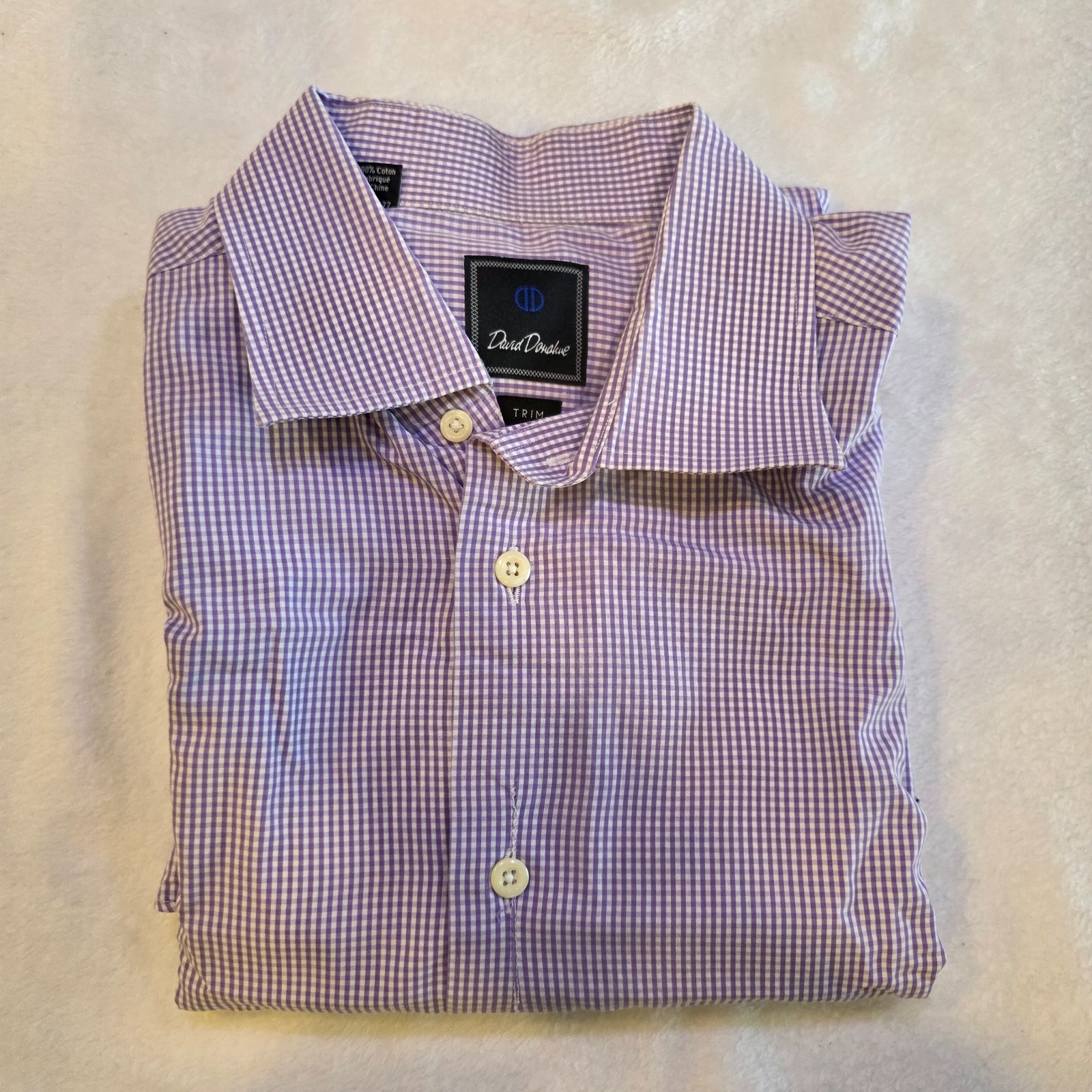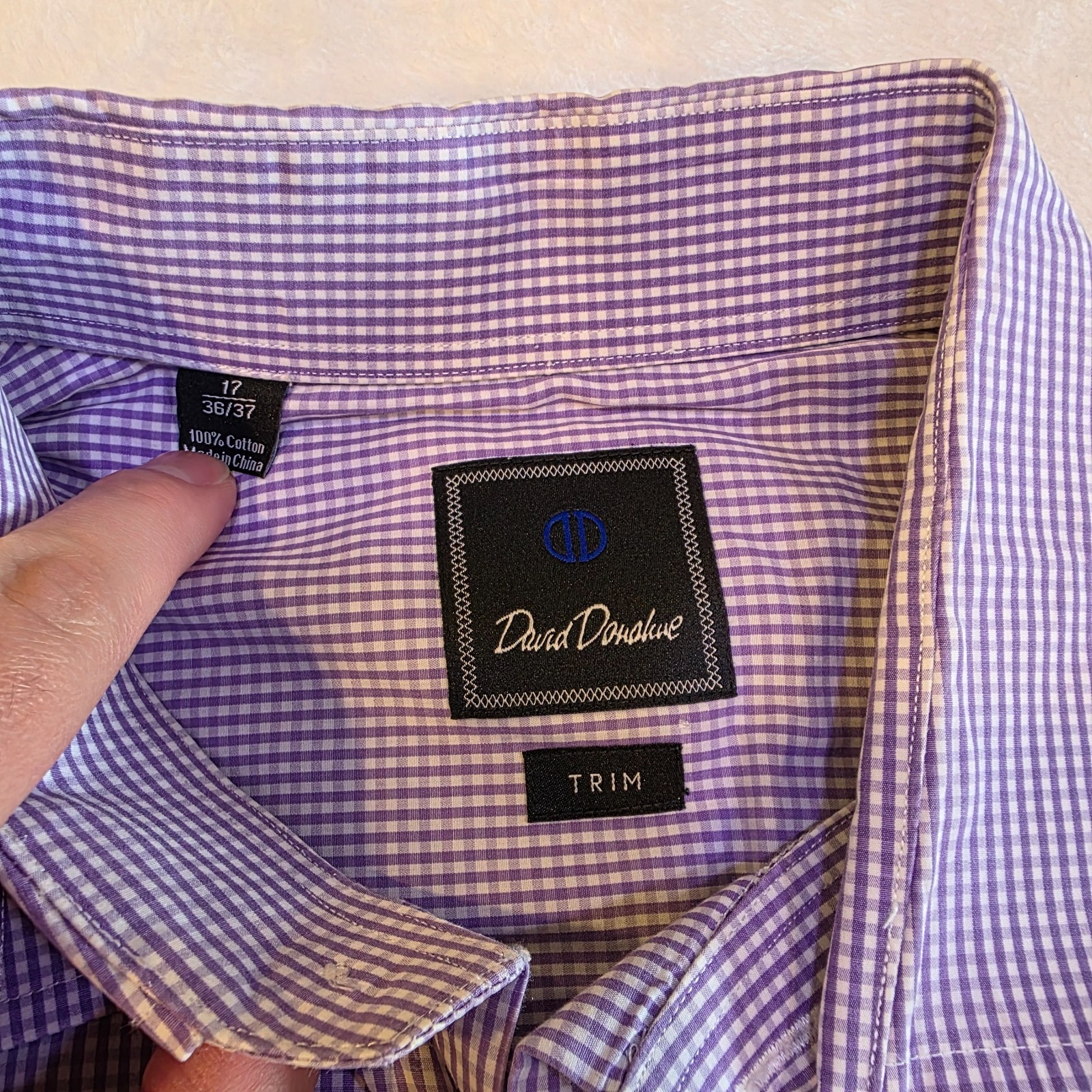 как выглядит Purple Check David Donahue Long Sleeve Button Up Dress Shirt Trim Size 17 36/37 фото