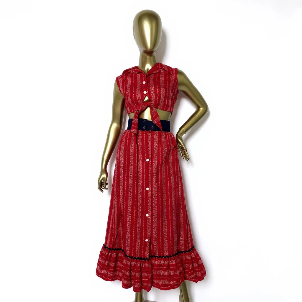 Vintage 70 s 2-Piece Crop Top Maxi Skirt Set, size sm