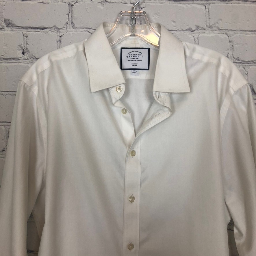 как выглядит Charles Tyrwhitt White Slim Fit Non Iron Buttondown Dress Shirt Size 16/34 фото