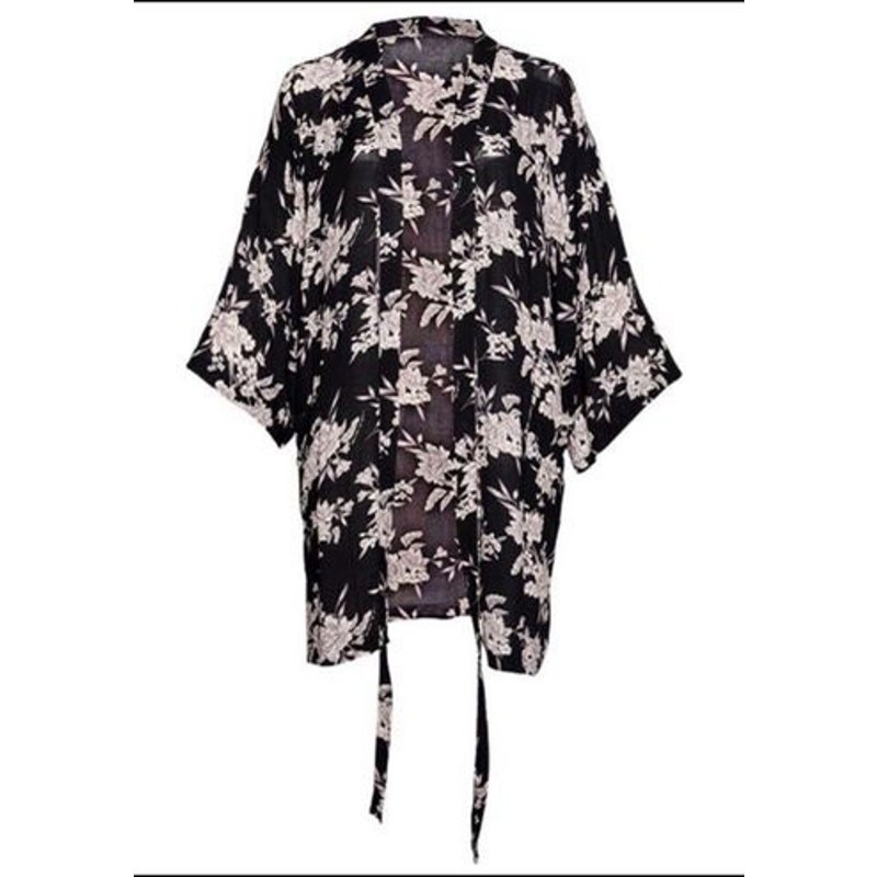 Spiritual Gangster Robe Womens One Size Black Floral Lounge Kimono Tie Front C3