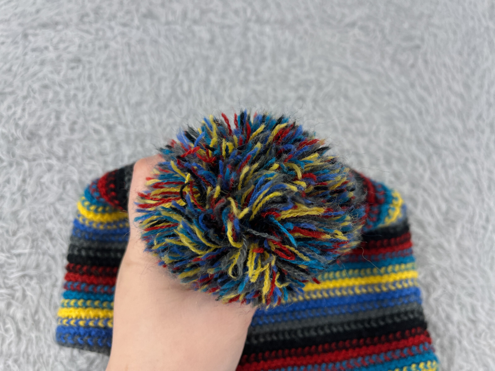 Nicecaps Inds Beanie Toque Youth 2T-4T Blue Yellow Stripe Knit Acrylic Ski Pom