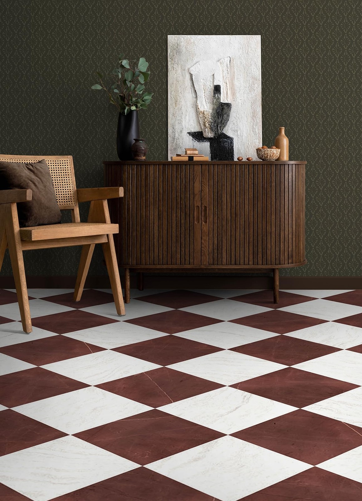 x Chris Loves Julia Bonneville Oxblood Peel and Stick Floor Tiles, FP6333