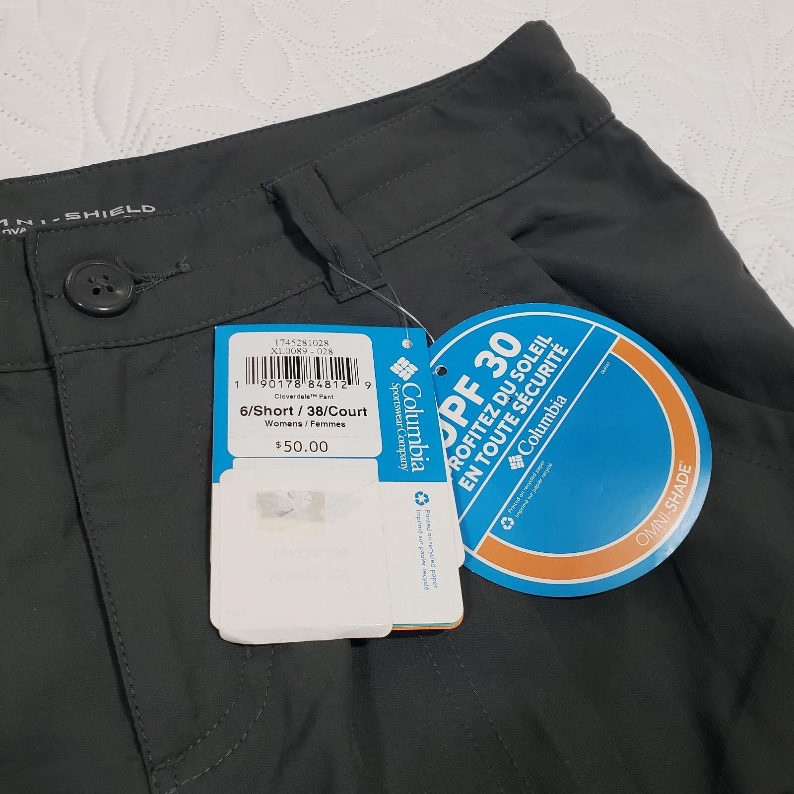 NWT Columbia Cloverdale Pants Womens 6 Short Gray Omni-Shade UPF 30 Hiking