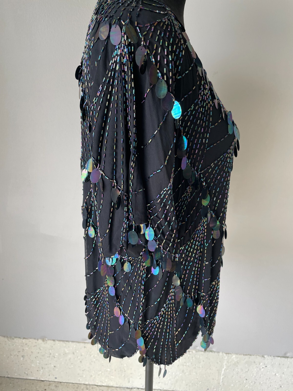 как выглядит VTG Black Silk Beaded SHO MAX Iridescent Party Formal Top Women