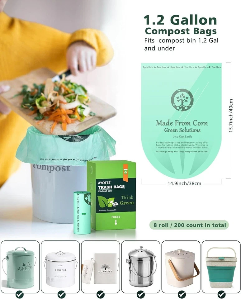 200 Count 1.2 Gallon Small Biodegradable Trash Bags, Compost Bags for Countertop