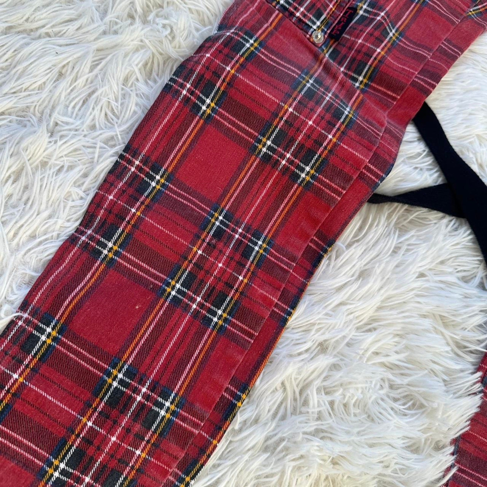 как выглядит Tripp NYC Red Black Plaid Punk Skinny Pants w/ Zippers Straps - Size 25/1 фото