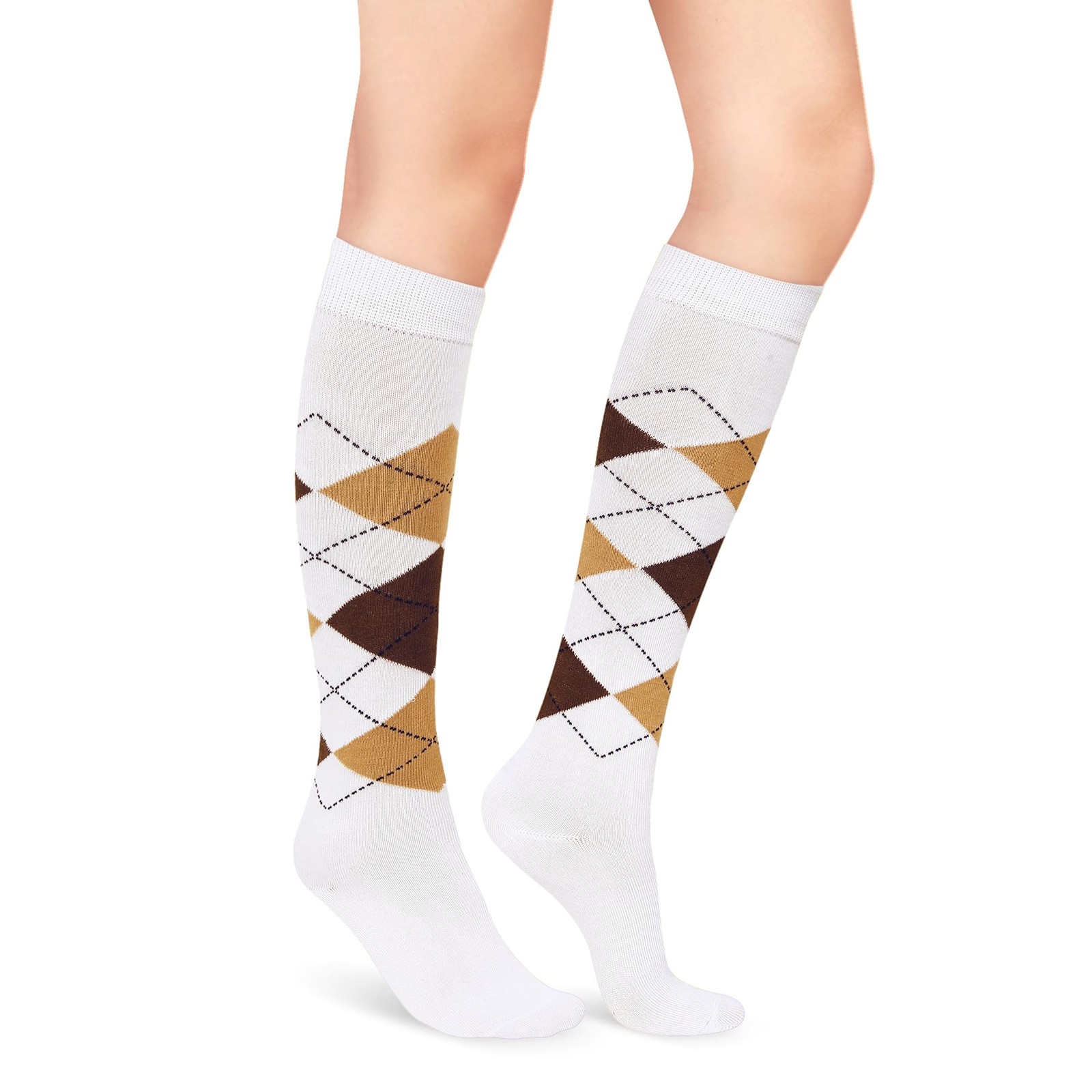 Violet Mist Womens Knee High Socks Argyle One Size, White Brown