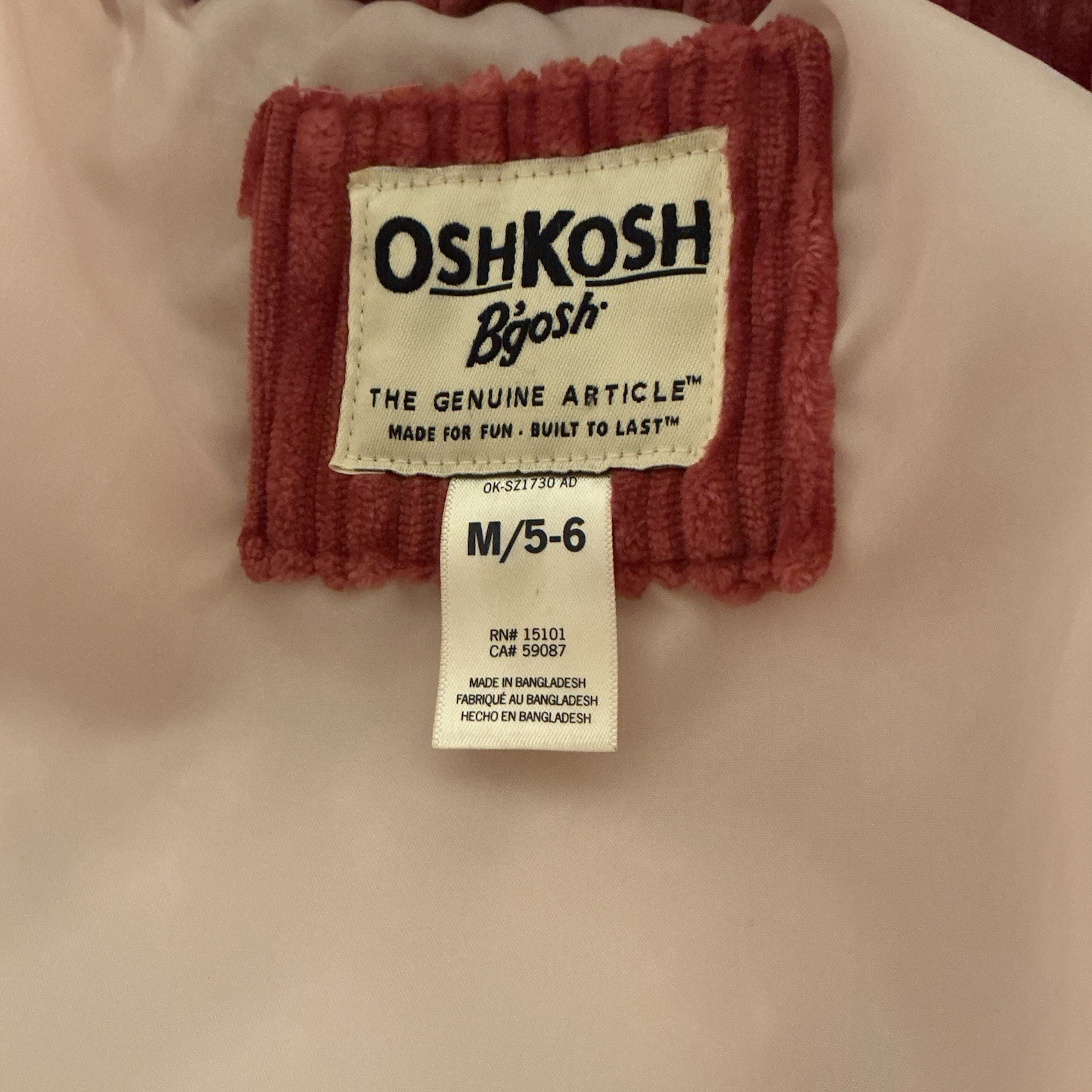 как выглядит OshKosh B gosh Girls Velboa Rose Corduroy Winter Jacket Size M/5-6 фото