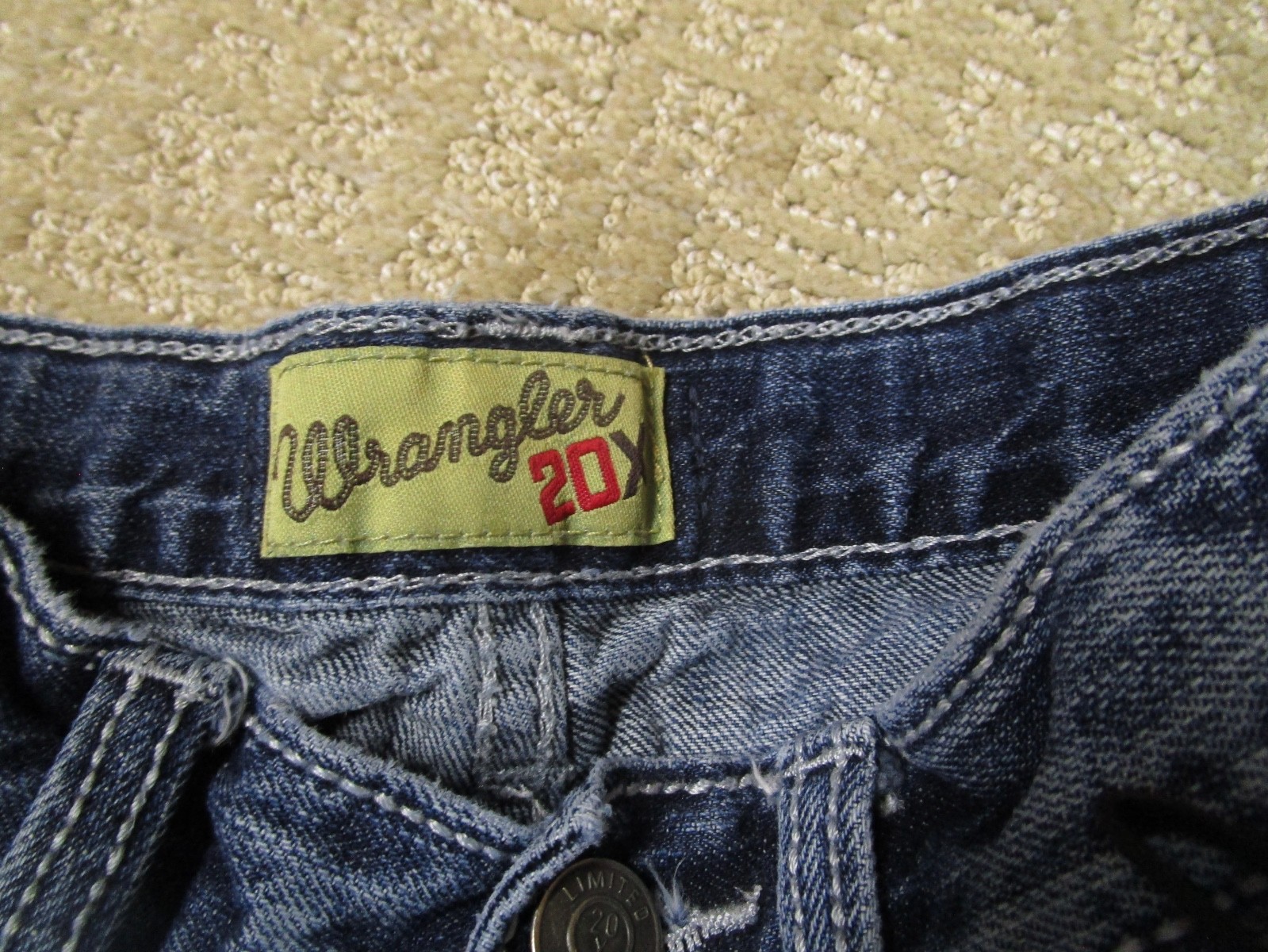 как выглядит Wrangler 20X Jeans Boys 10 Bootcut Youth Kids Western Pants Dark Wash Distressed фото