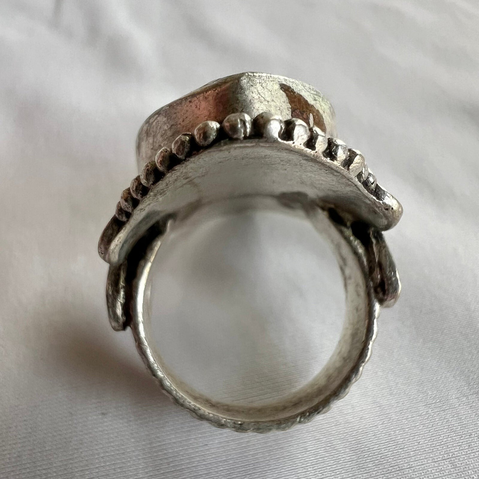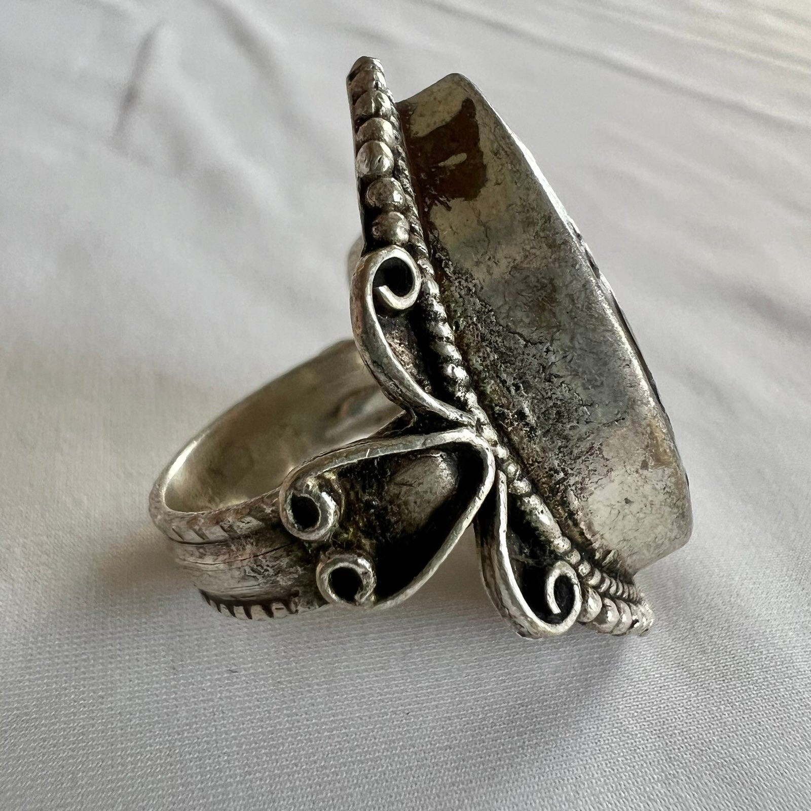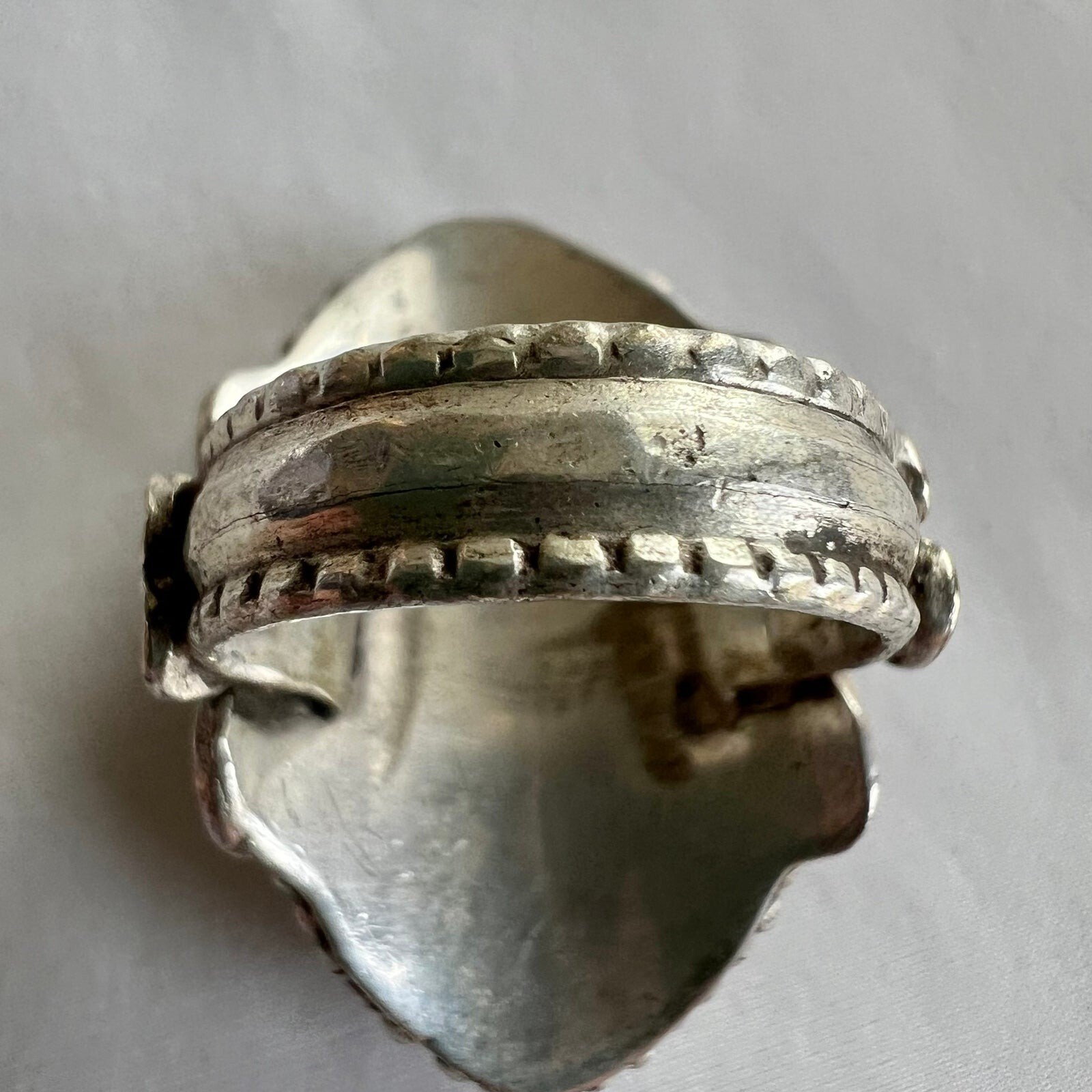 Turquoise Coral Inlay Tibetan Silver Handmade Artisan Chunky Statement Ring