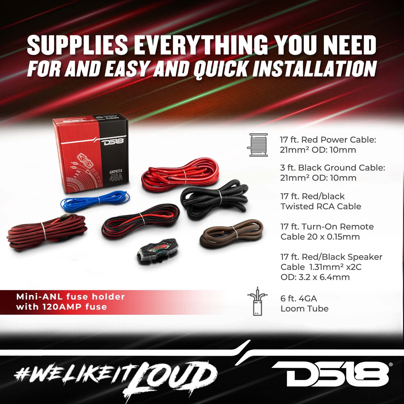 DS18 AMPKIT4 4 Gauge Amp Installation Wiring Kit - 4- Gauge, Assorted