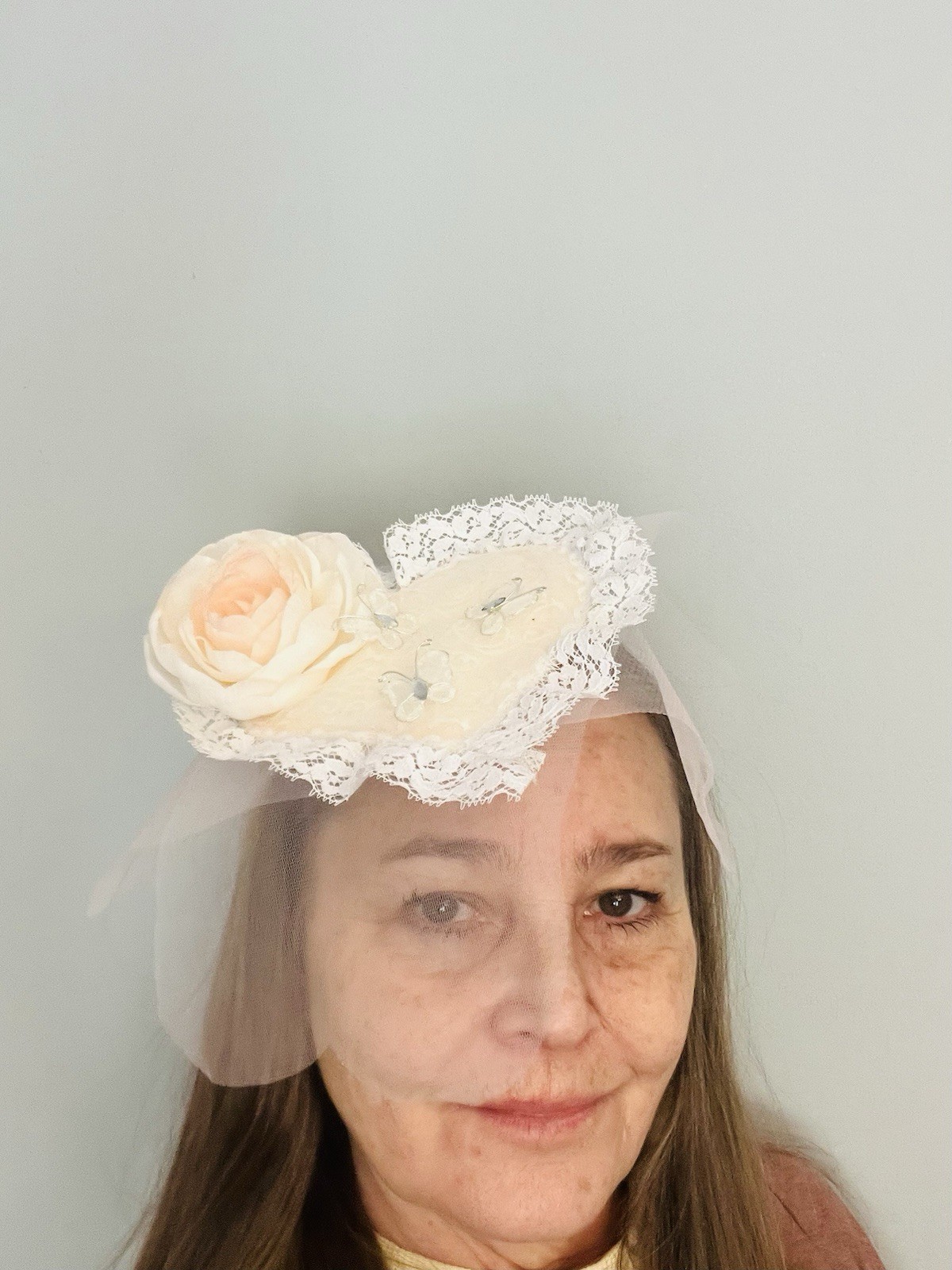 Hat Fascinator Wedding Tea Special Eveny Heart W Lace,Peach Flower Butterflies