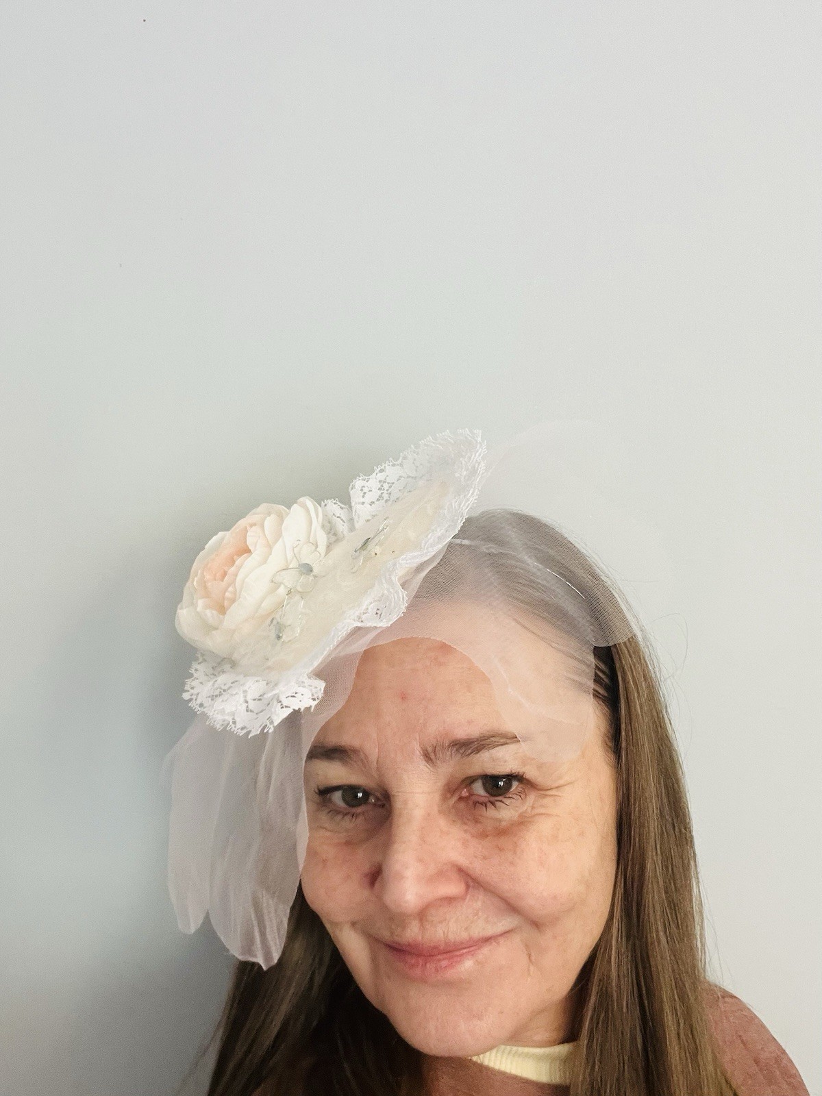 как выглядит Hat Fascinator Wedding Tea Special Eveny Heart W Lace,Peach Flower Butterflies фото