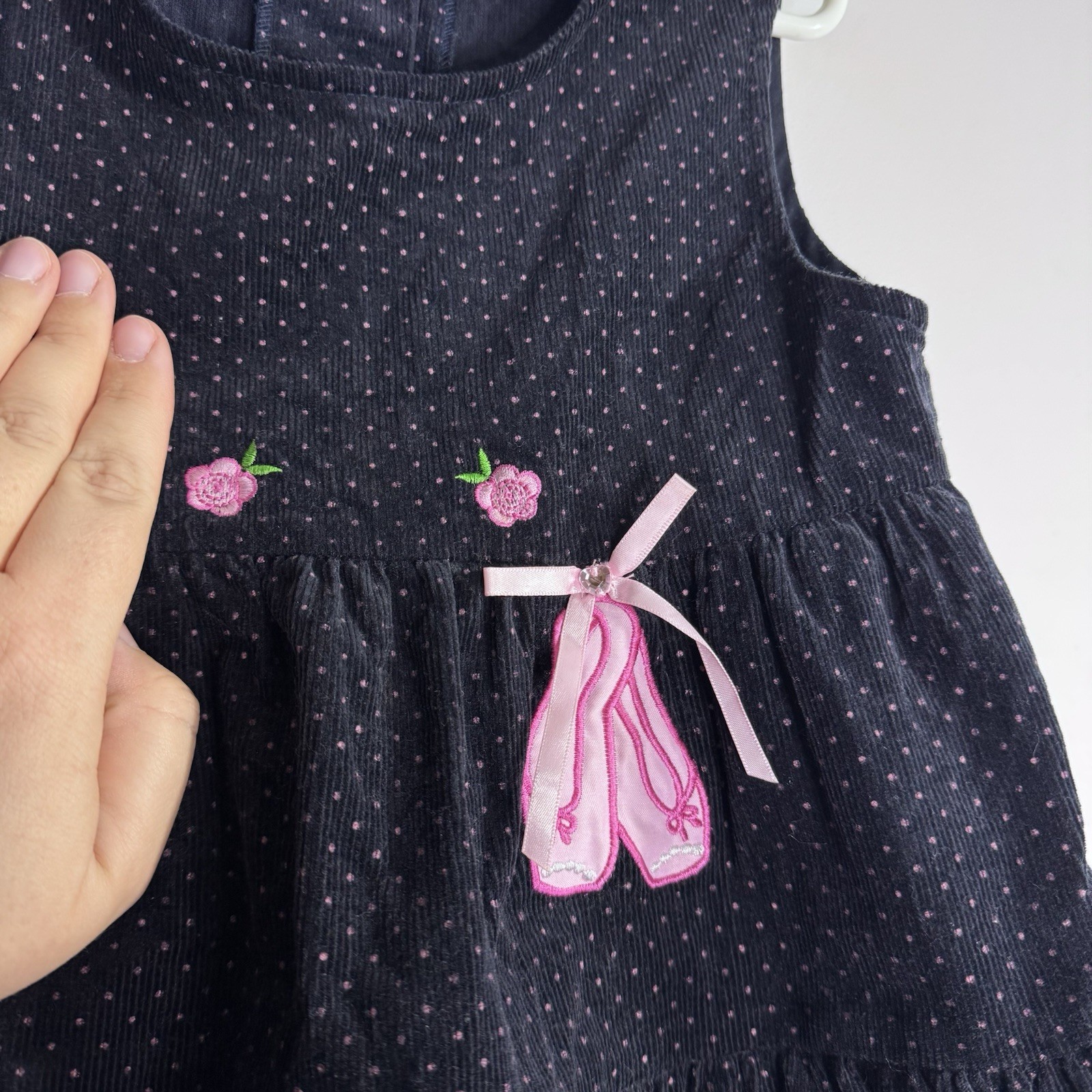как выглядит Vintage Rare Too Girls 4T 5 Navy Corduroy Ballet Dress 90s Roses фото